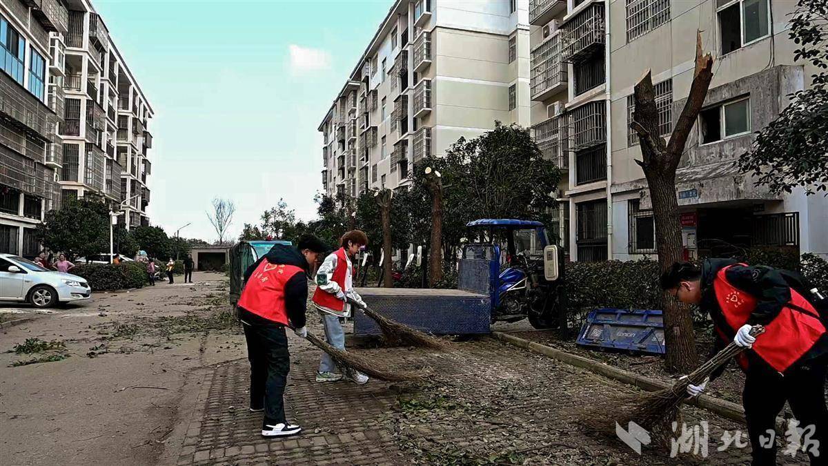 在老屋汤村党员群众服务中心周边,身穿红马甲的大学生志愿者进行了卫生清扫。2023级运动健康指导专业学生周天乐说,学校组织大家来这里开展志愿活动,收获很多。