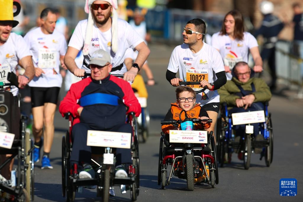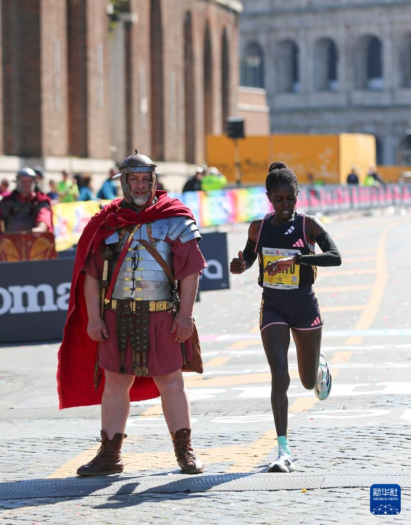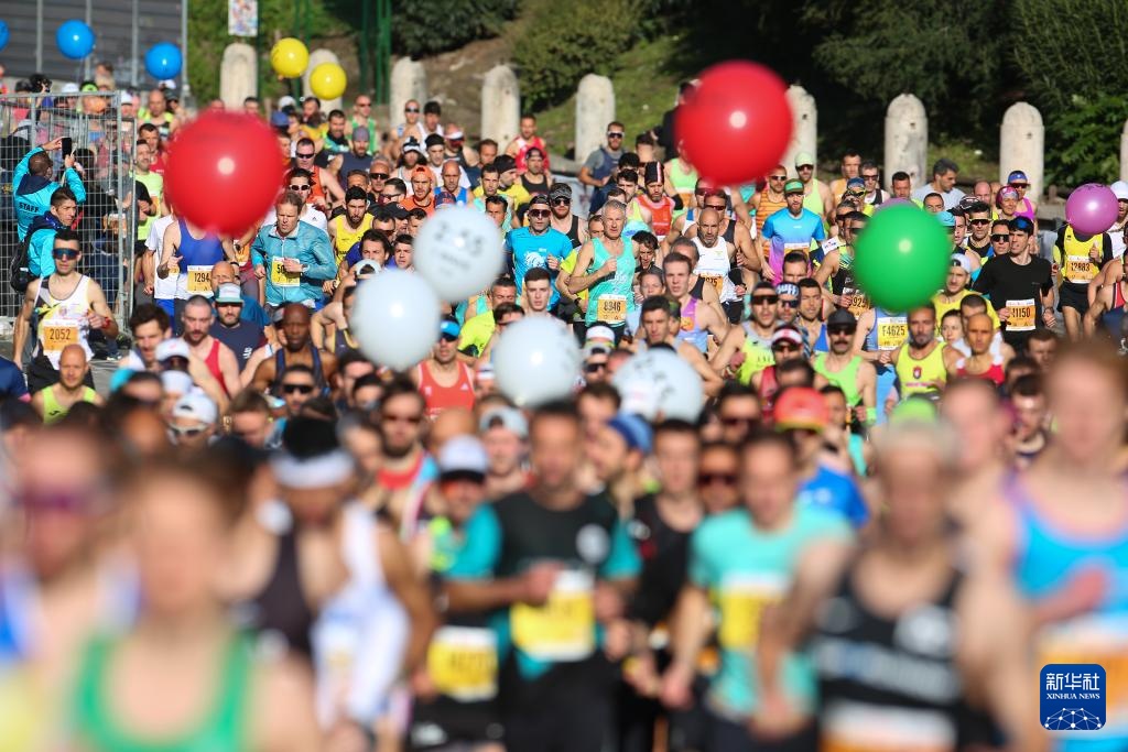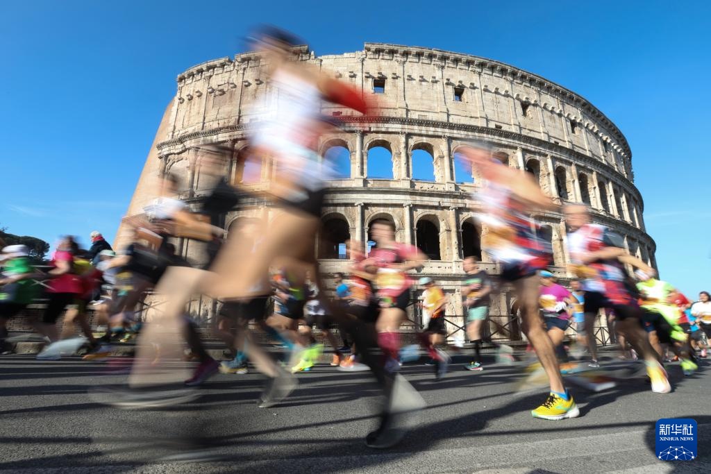 当日,2024罗马马拉松赛鸣枪开跑。