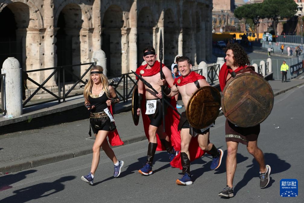 3月17日,参赛选手经过罗马斗兽场。新华社记者 李京 摄