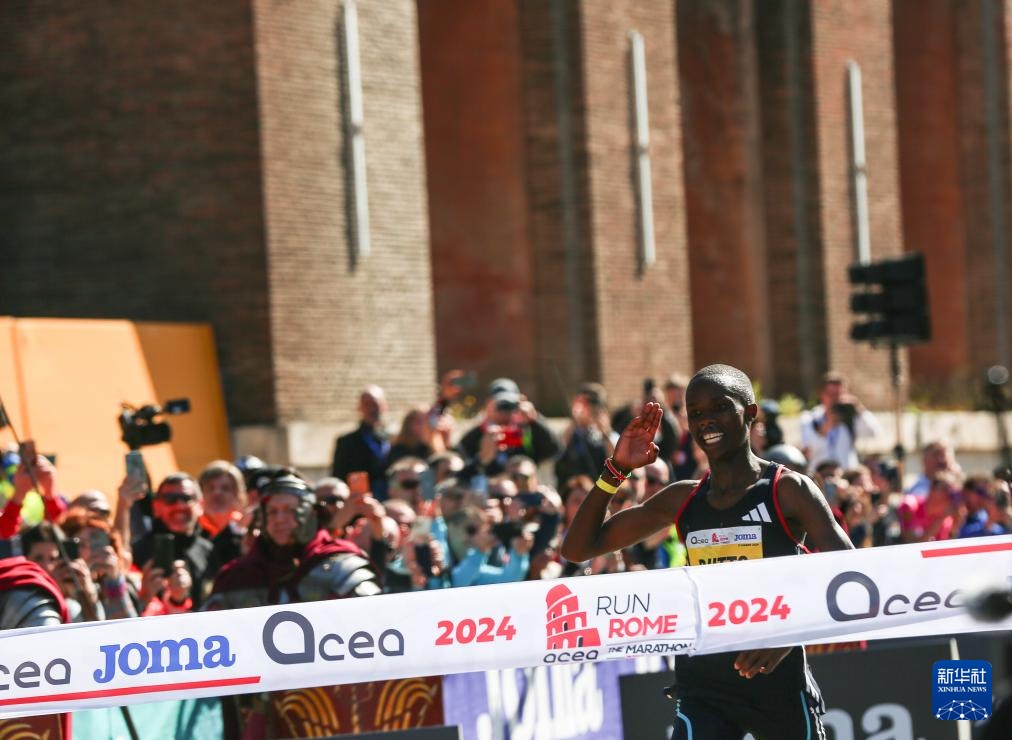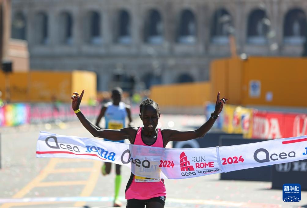 3月17日,肯尼亚选手拉加特在比赛中冲线。她以2小时24分36秒的成绩获得女子组冠军。新华社记者 李京 摄