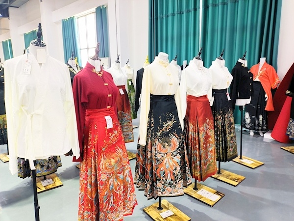 “马面裙其实是汉服生产的一个发展阶段。”张龙飞告诉记者。以前,市面上的汉服大多制作华丽、单价较高,其消费群体也固定在汉服爱好者的小圈层中。2018年,曹县凭借完整的演出服生产链条,加入汉服生产赛道,推出单价更低的汉服,迅速吸引了大批消费者。“曹县生产的汉服推动汉服产品从小众走向大众,马面裙的出现更代表着汉服越来越日常化。”张龙飞说。