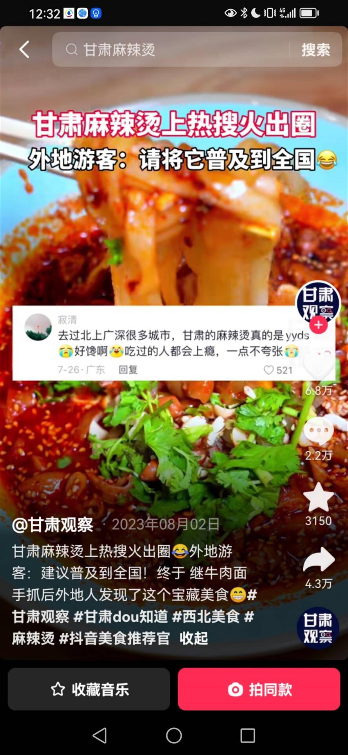去年8月2日,甘肃媒体在网上推广麻辣烫(图源:甘肃观察)