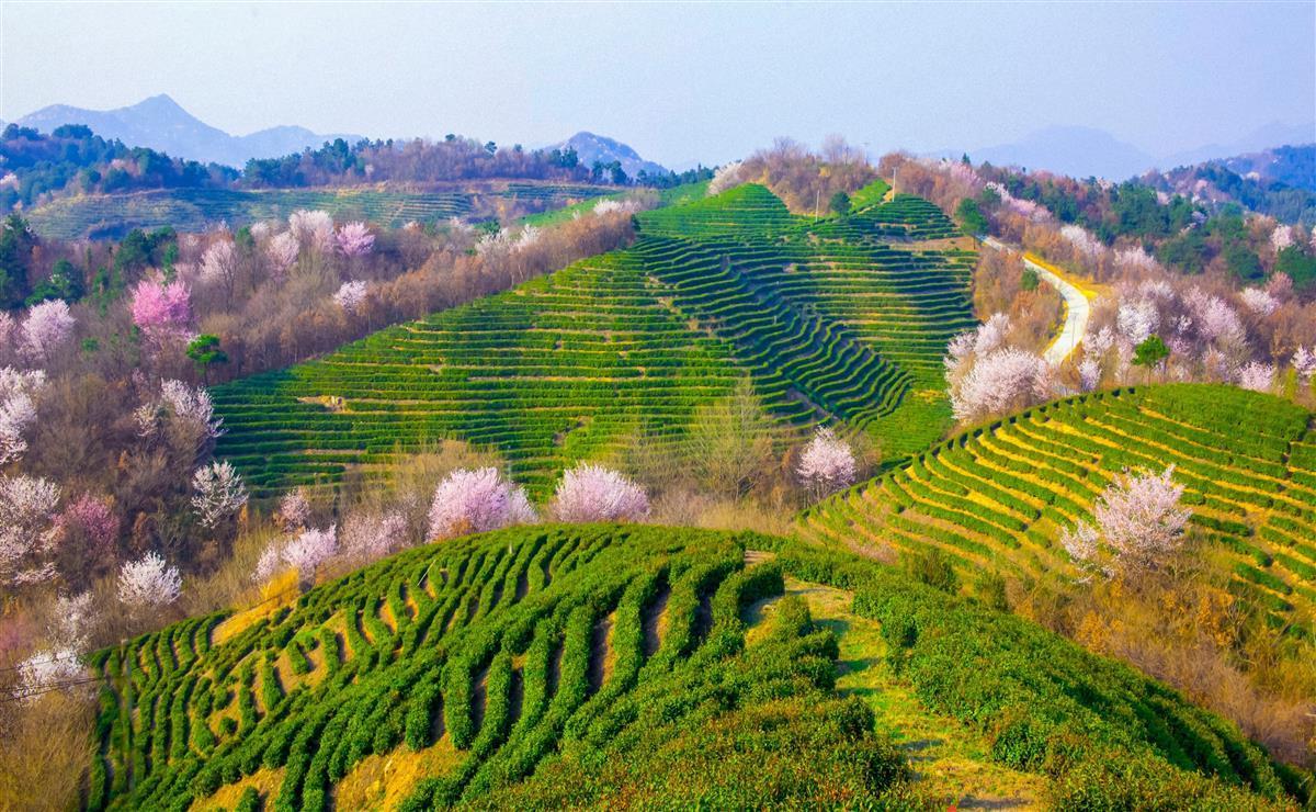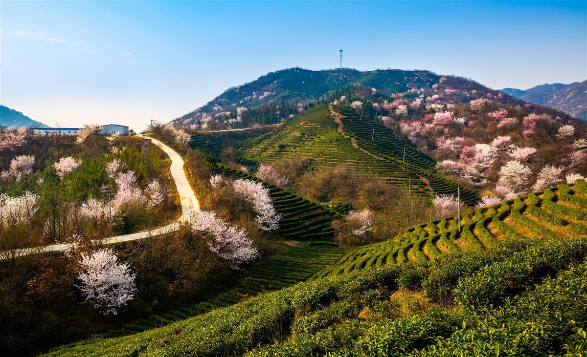 沿着蜿蜒的山路,走进大悟县三里城镇柏园村,漫山遍野的野生樱花竞相绽放,满目翠绿的茶园层层叠叠。这里是茶的世界,更是花的海洋。