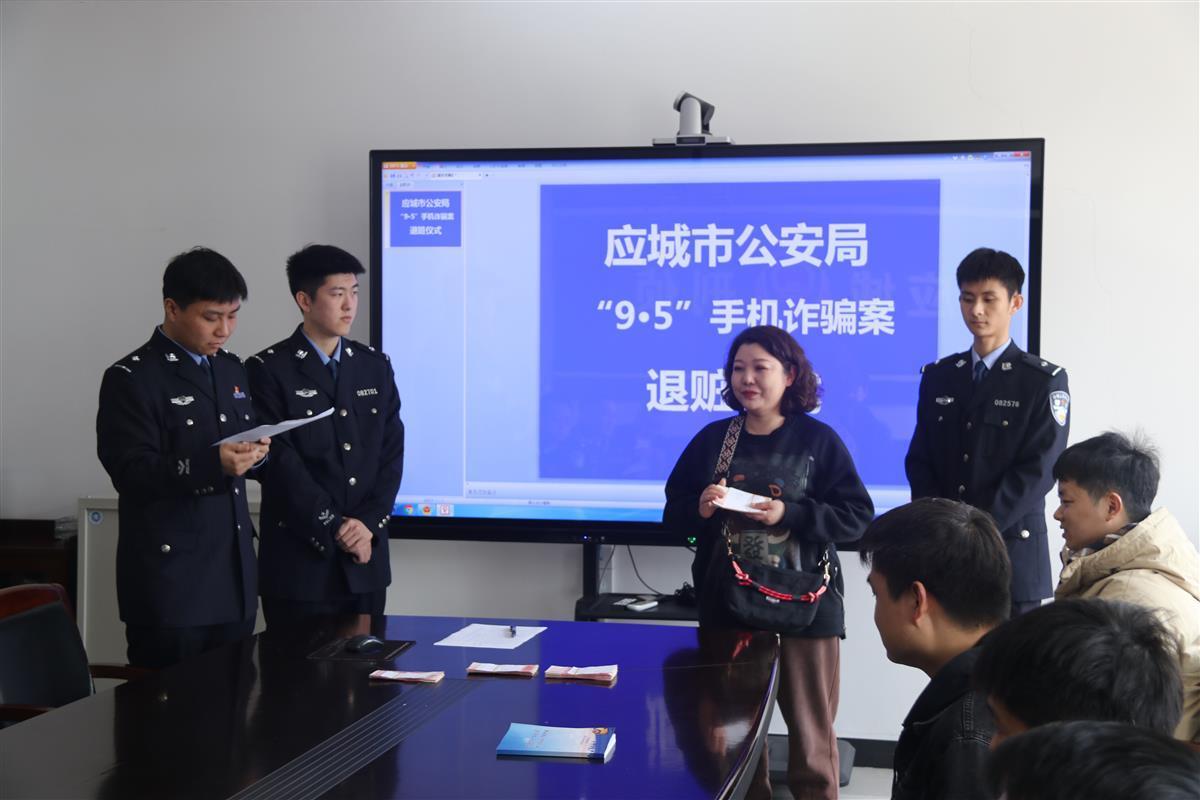 3月19日上午,来自孝南、云梦、天门、应城的9名受害人从应城警方手中领回了全部被骗损失,共计3.25万元。
