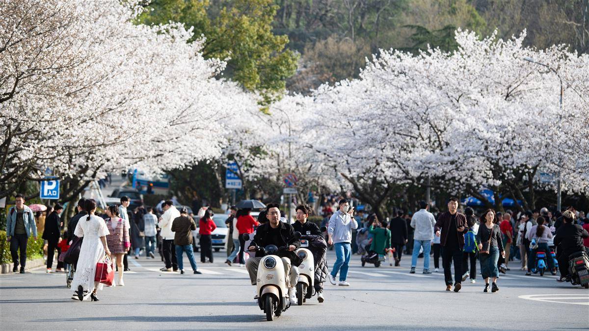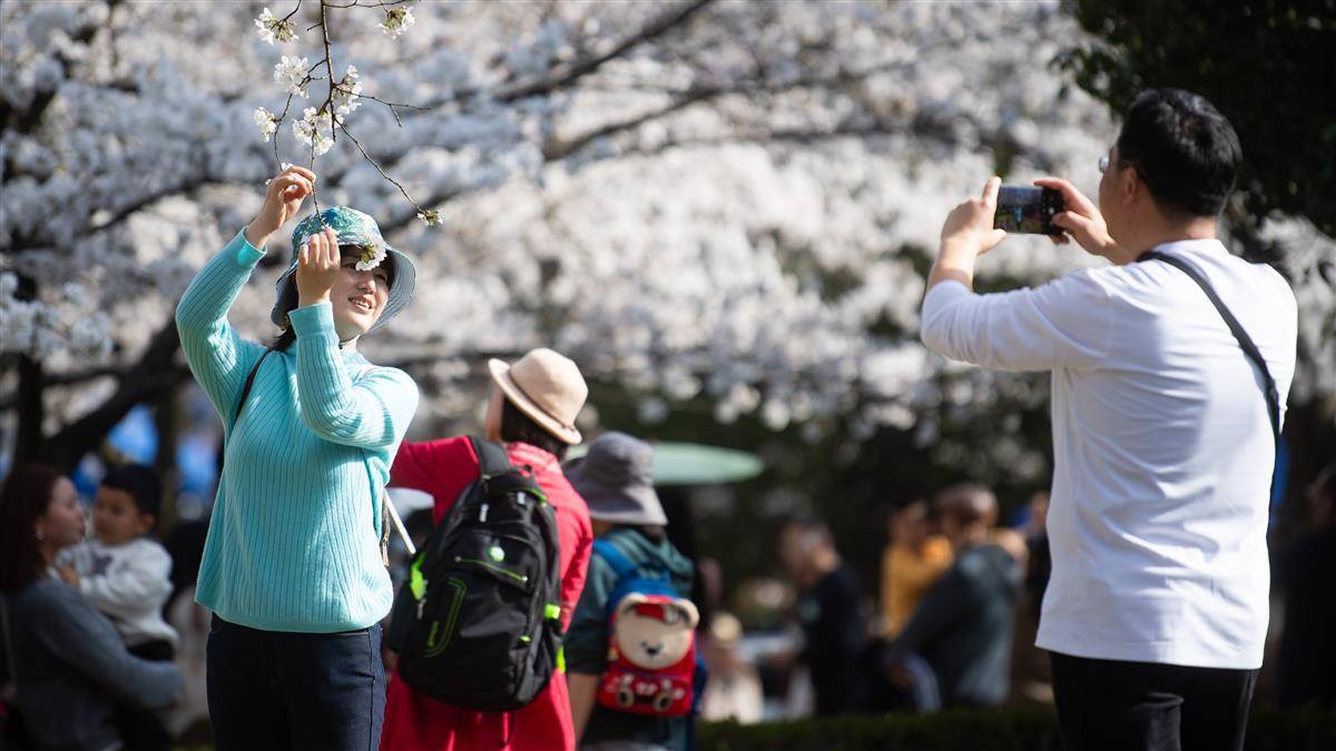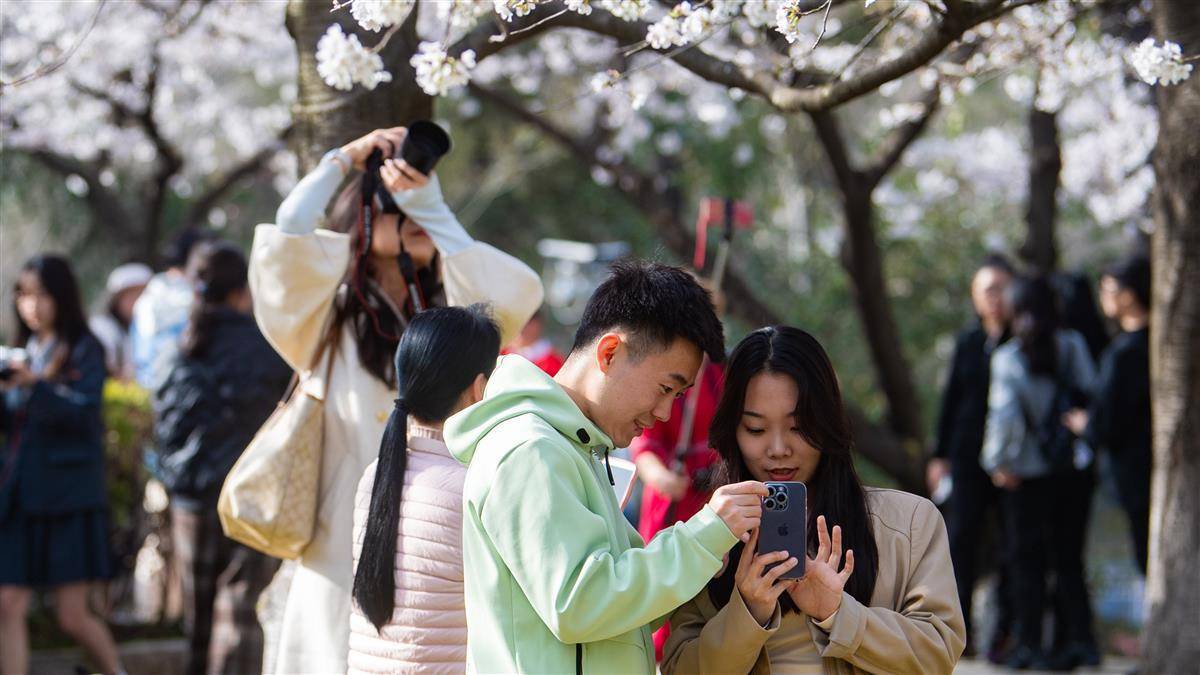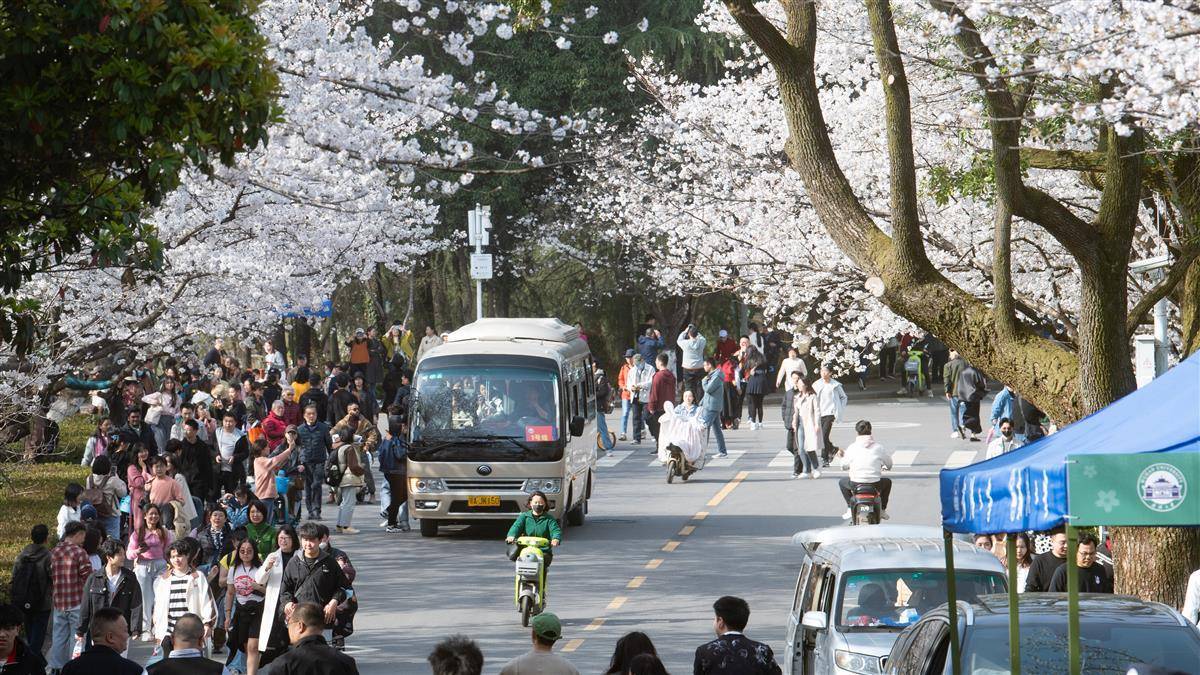 2024年3月19日,武汉大学樱花盛放,前来赏花的师生络绎不绝。3月17日,武汉大学发布2024年赏樱政策,社会公众必须通过预约方能进校赏花,预约进校时段为3月20日至4月6日,工作日08:30—17:30、周末08:00—18:00。3月17日20:00起,社会公众可通过武汉大学官方网站、官方微信进入武汉大学赏樱预约系统对3日后的参观行程进行预约。此外,学校还将在3月23日(星期六)设立高中生赏樱专场,当日不接受其他社会公众及校友预约。(湖北日报全媒记者 何宇欣 通讯员 吴江龙 摄)