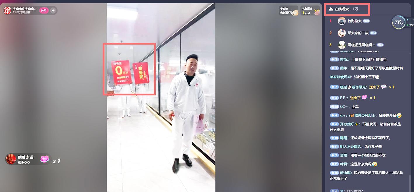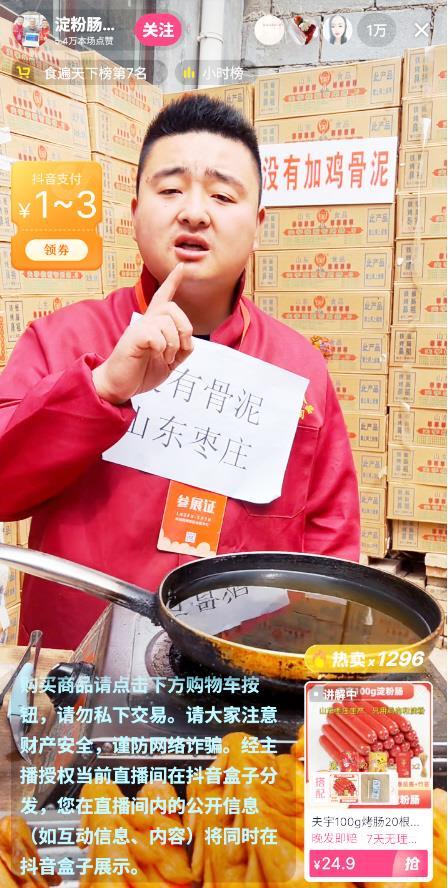 售卖淀粉肠博主直播间画面 视频截图