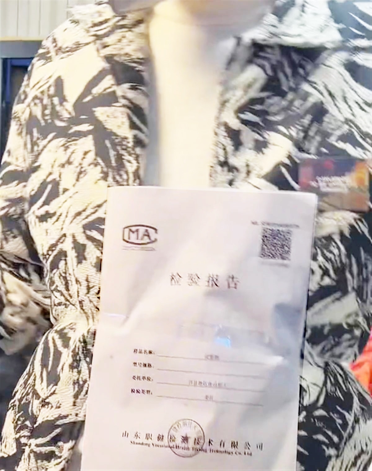 四川一烤肠摊店员胸前贴着检测报告 视频截图
