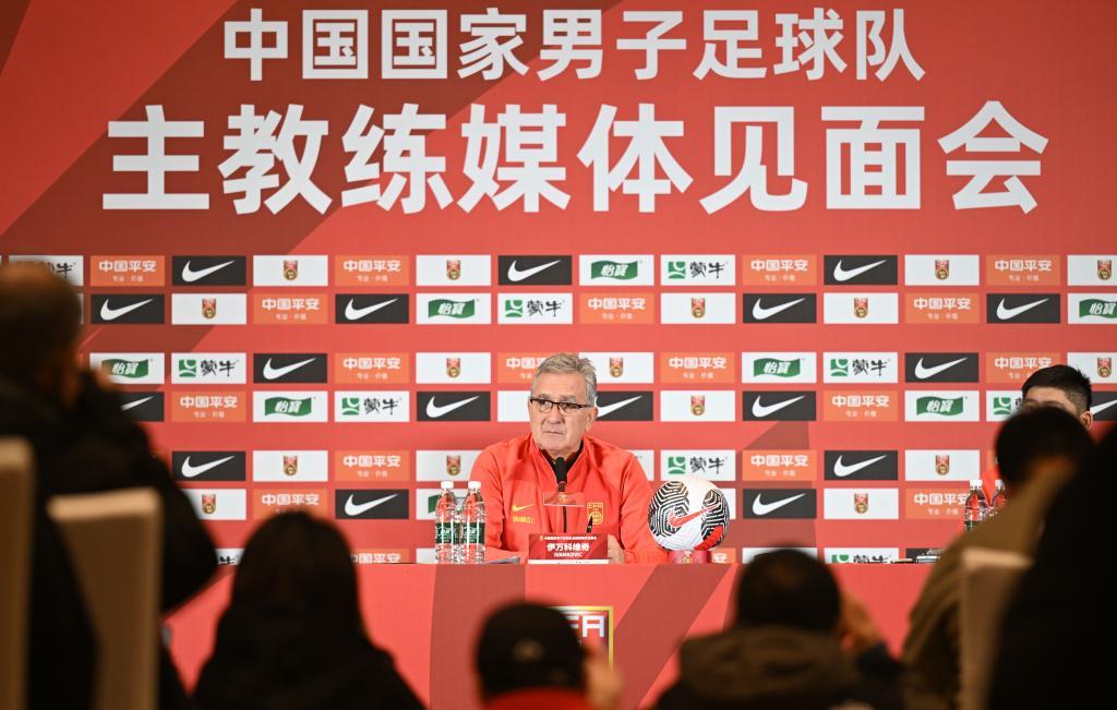 3月8日,中国国家男子足球队新任主教练伊万科维奇在媒体见面会上。新华社记者 孙凡越 摄