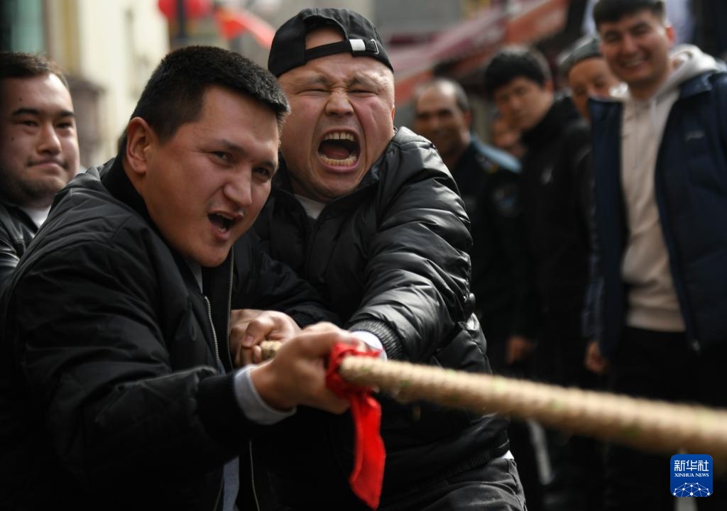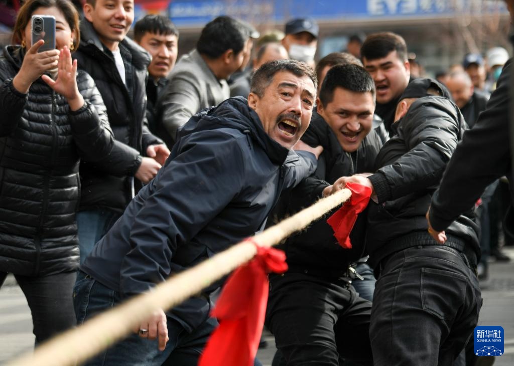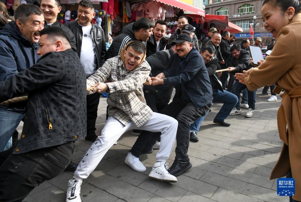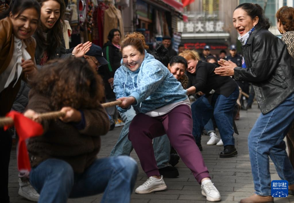 当日春分,乌鲁木齐市天山区二道桥街道二道桥社区联合辖区商城开展拔河比赛,倡导全民健身,享受春日暖阳。