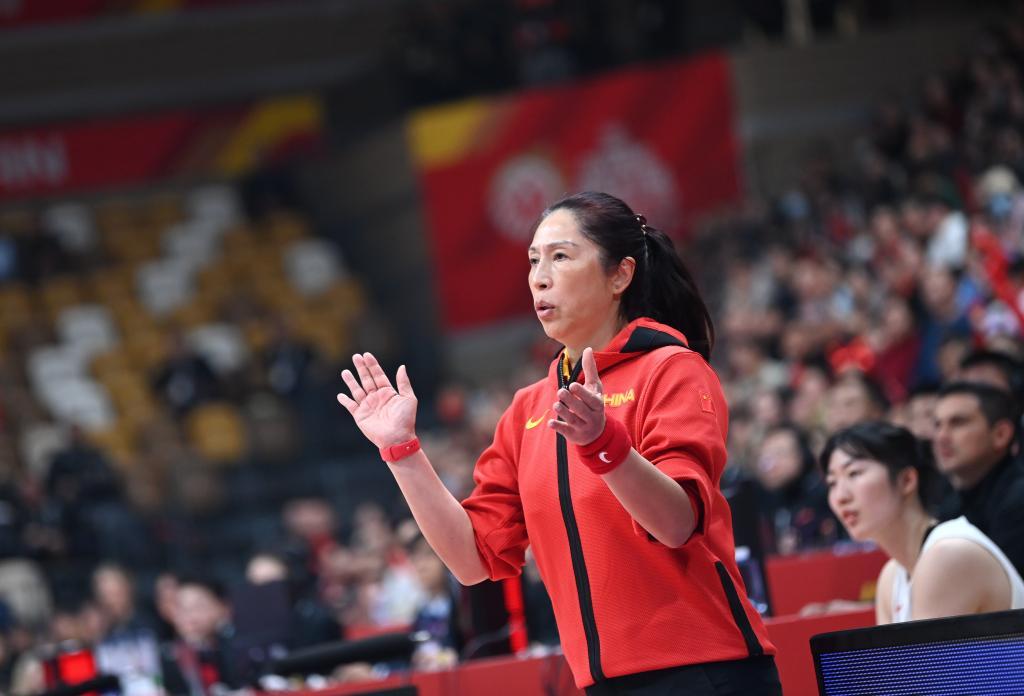 2月8日,2024国际篮联奥运女篮资格赛中国队主教练郑薇场边指挥。新华社记者 李一博 摄