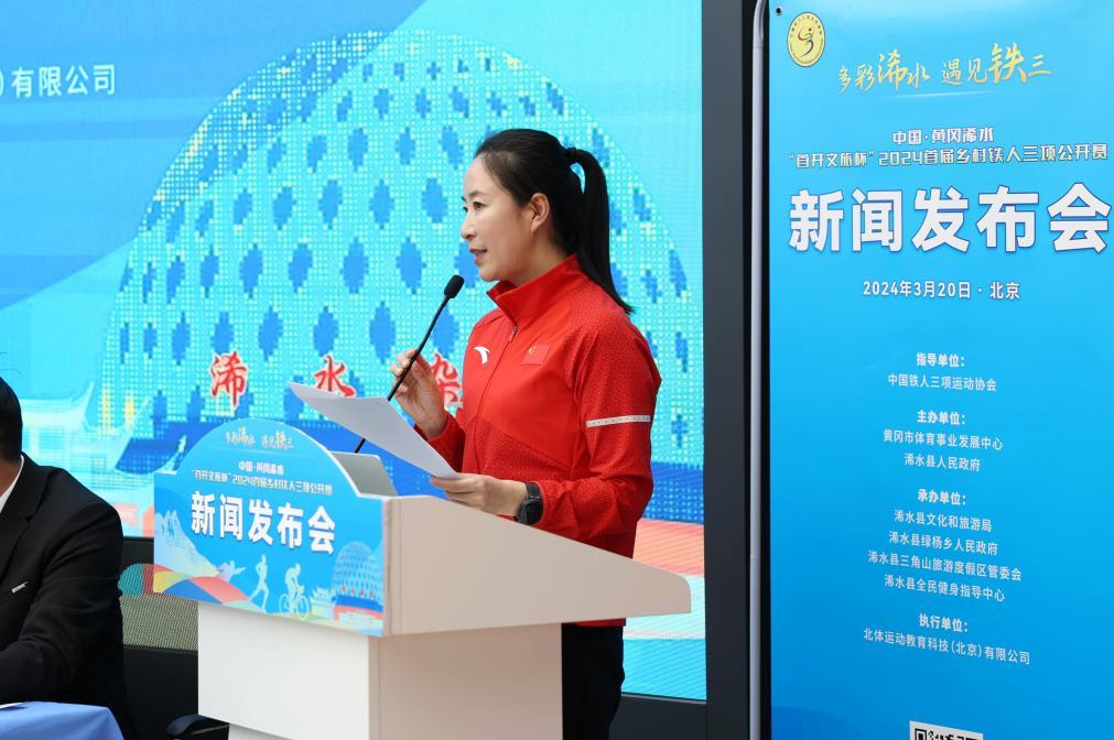 在发布会现场,奥运竞走冠军王丽萍向铁人三项运动爱好者们发出邀请,今年四月相约湖北浠水。