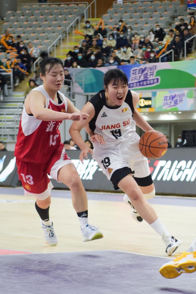 2023年2月24日,在2022-2023赛季中国女子篮球联赛(WCBA)季后赛四分之一决赛第一轮比赛中,浙江稠州银行队以76比67战胜江苏南钢队。江苏南钢队球员罗欣棫(右)在比赛中进攻。新华社记者 李志鹏 摄