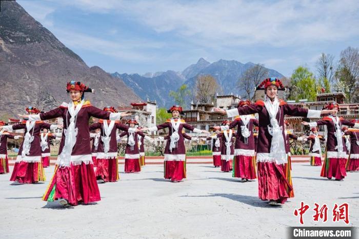 中新网成都3月21日电 (记者 刘忠俊)3月21日,“花开丹巴·为梨而来”梨花春赏季活动在四川丹巴县正式启幕,游客、网络达人等组成的梨花春赏团穿梭于如诗如画的藏寨之中,沉浸式体验《梨花下的成人礼——岁月织锦》分段式实景歌舞剧,感受丹巴嘉绒女子成人礼和嘉绒民俗的丰富文化底蕴。