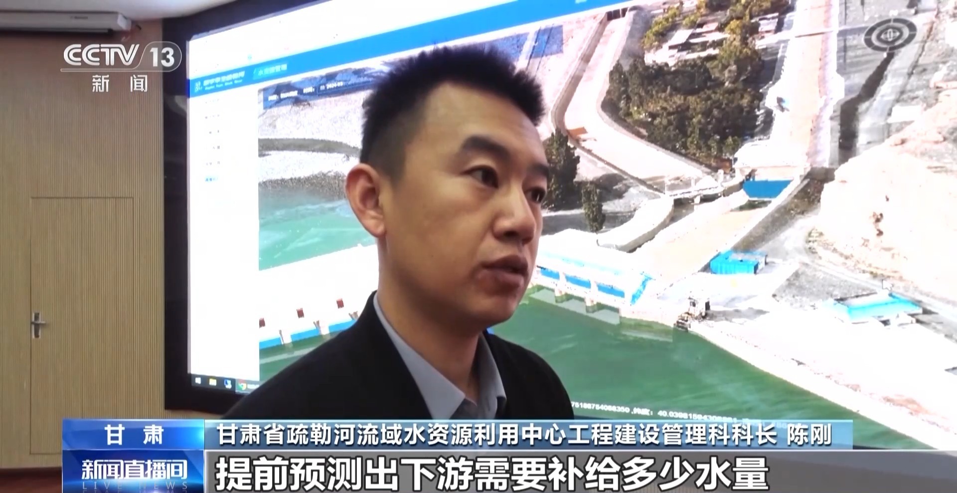 甘肃省疏勒河流域水资源利用中心工程建设管理科科长 陈刚:以前是上游放水,下游的职工对水库水位进行实时监测,快到正常蓄水位时会通知上游停水,然后这一次我们通过方案预演,提前预测出下游需要补给多少水量,估算出上游放闸流量,统计它的时间,这样水资源的利用更精确、更高效。