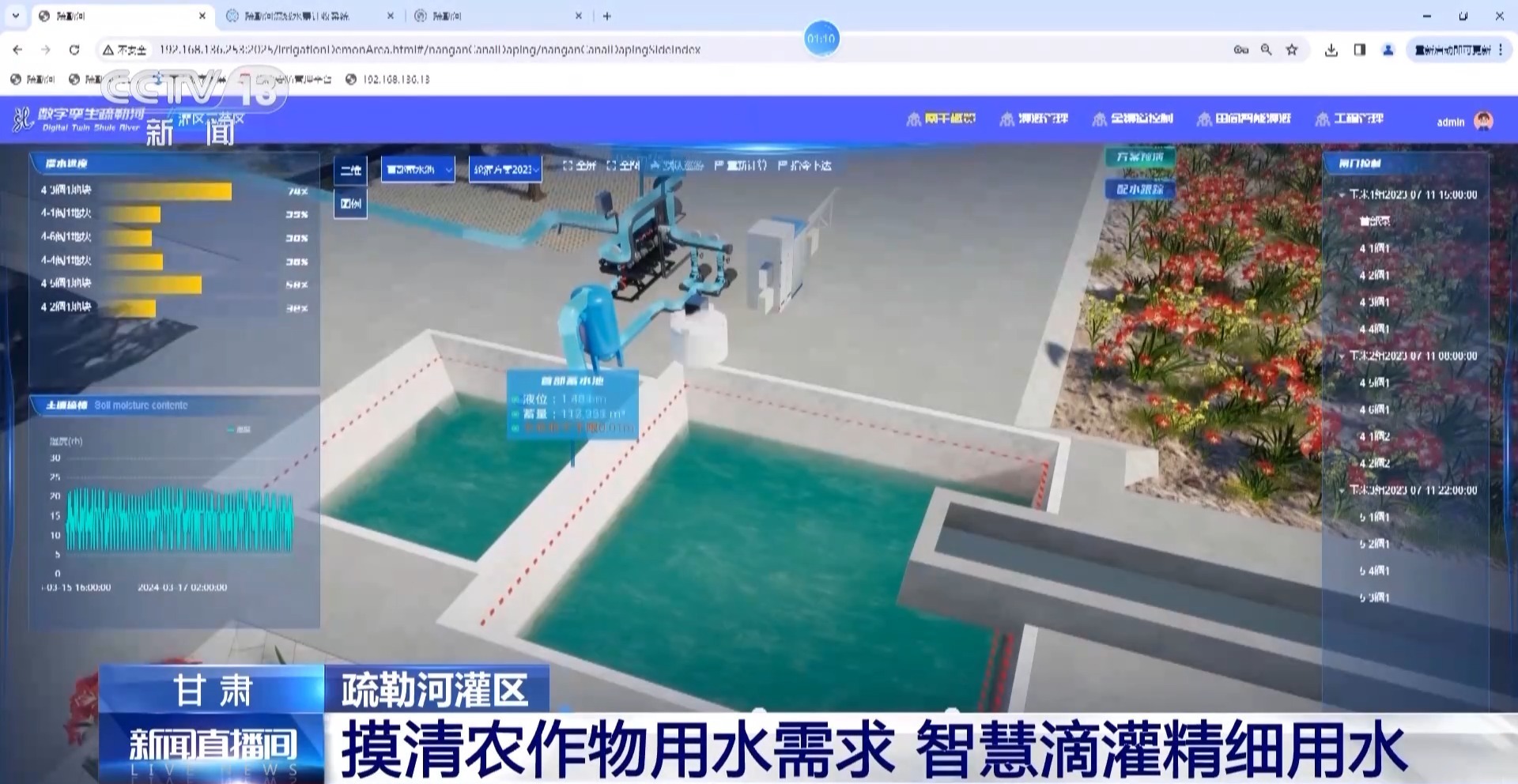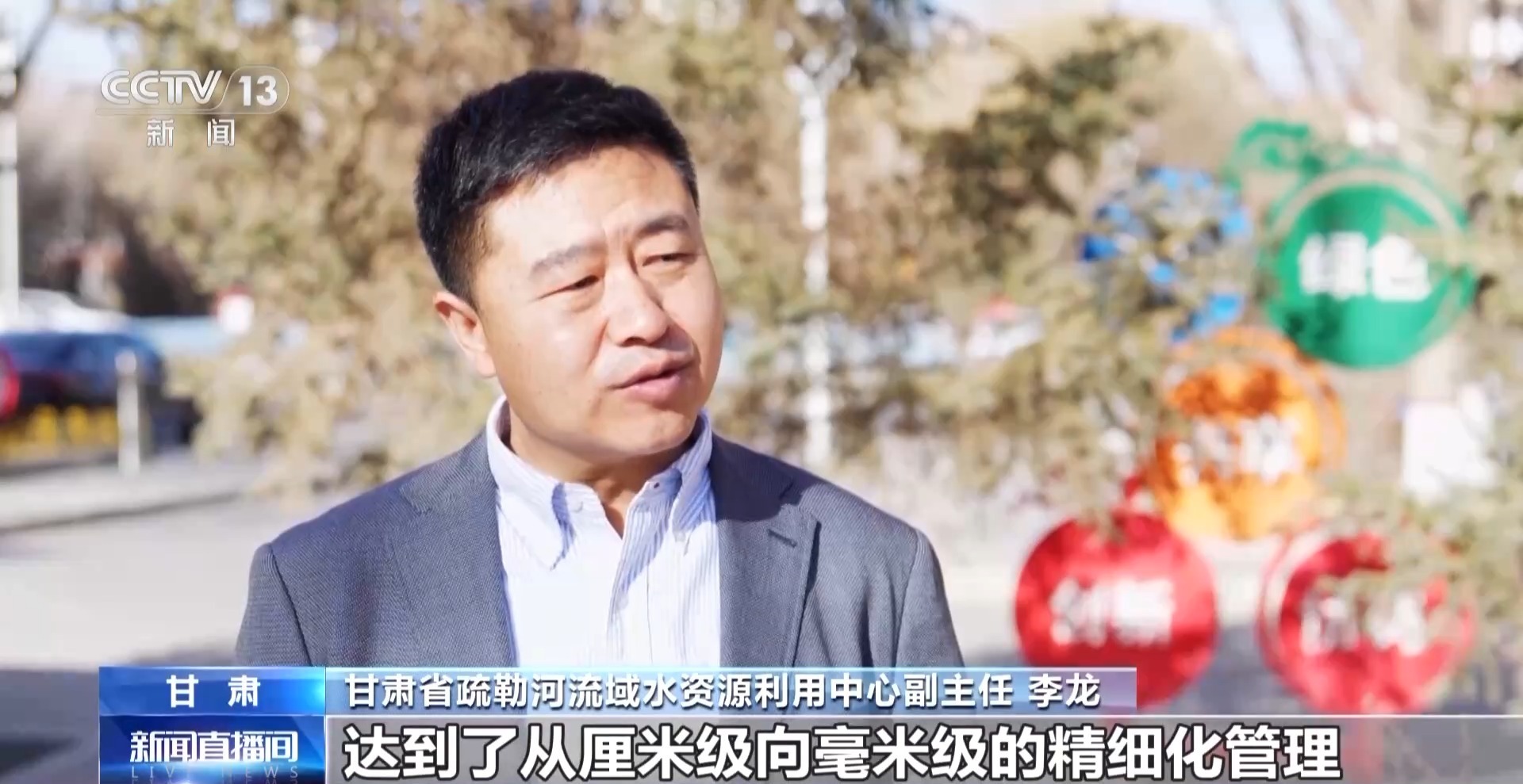 甘肃省疏勒河流域水资源利用中心副主任 李龙:因为它是完全精准化的,智能测量系统、过水系统达到了从厘米级向毫米级的精细化管理,节水可以达到30%以上。