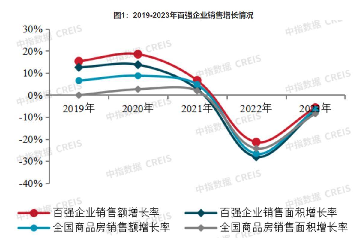 房地产市场仍处于调整阶段,百强企业顺势而为,聚焦核心城市核心区域,把握市场主流需求抢收回款。2023年,百强企业销售总额、销售面积分别达53896.0亿元、26131.6万平方米,同比分别下降5.8%、7.4%,表现略好于全国水平。