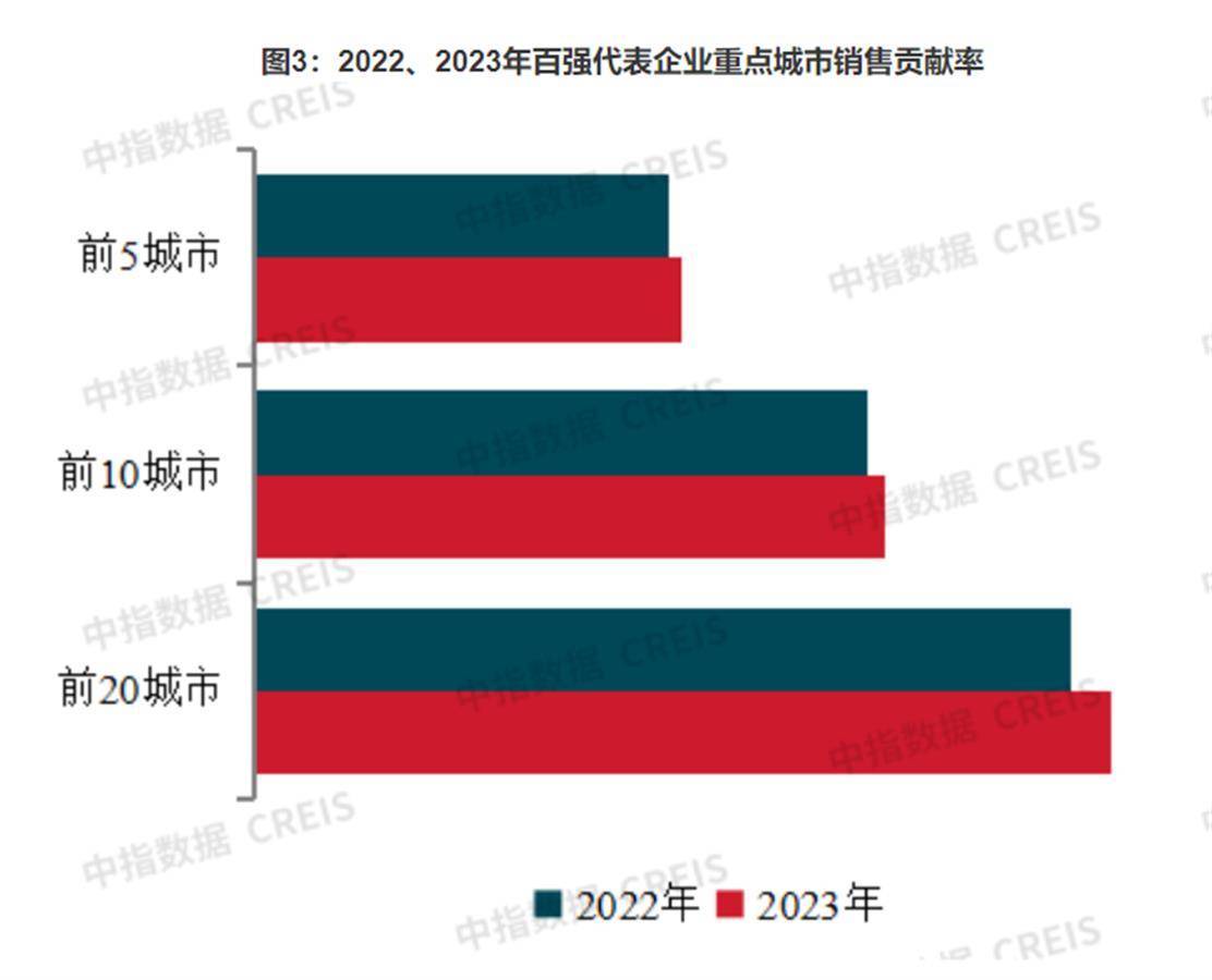 销售业绩也引导百强房企进一步向市场预期好的一、二线核心城市聚集。