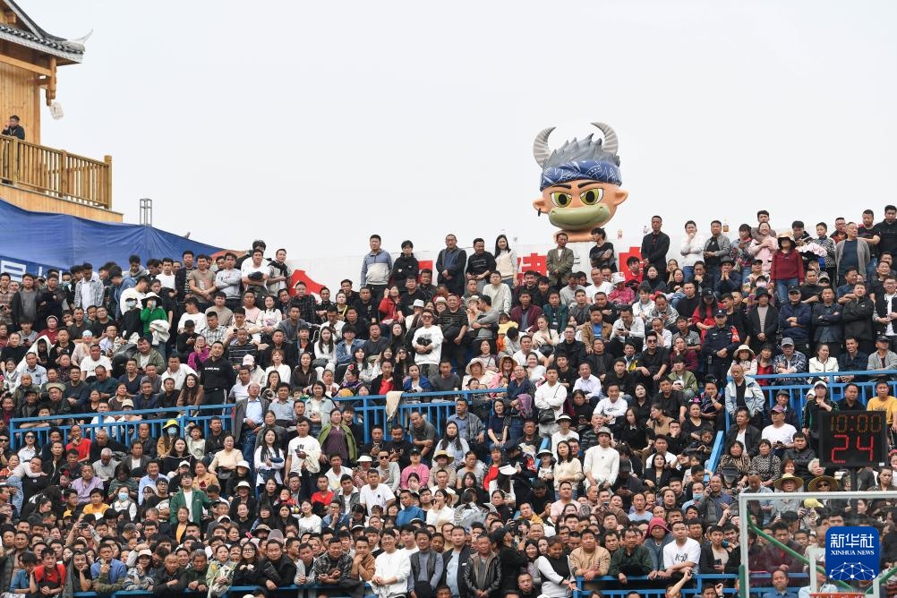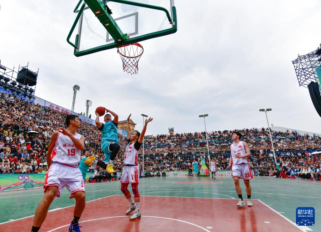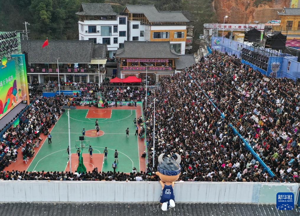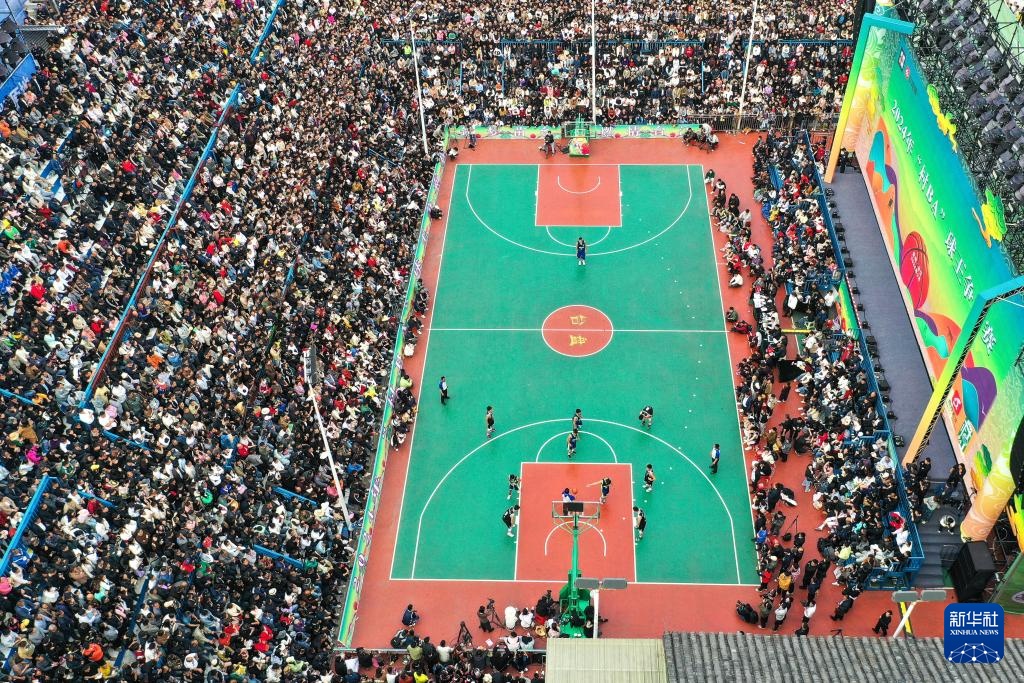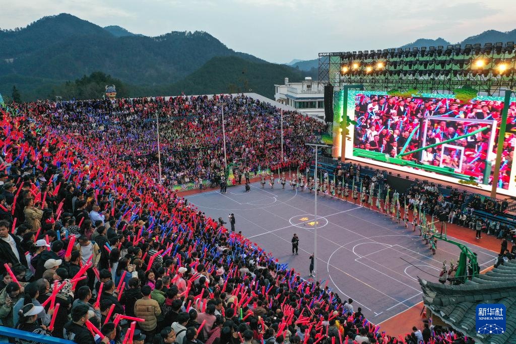 这是3月22日拍摄的2024年乡村篮球球王争霸赛开幕式现场(无人机照片)。新华社记者 杨文斌 摄