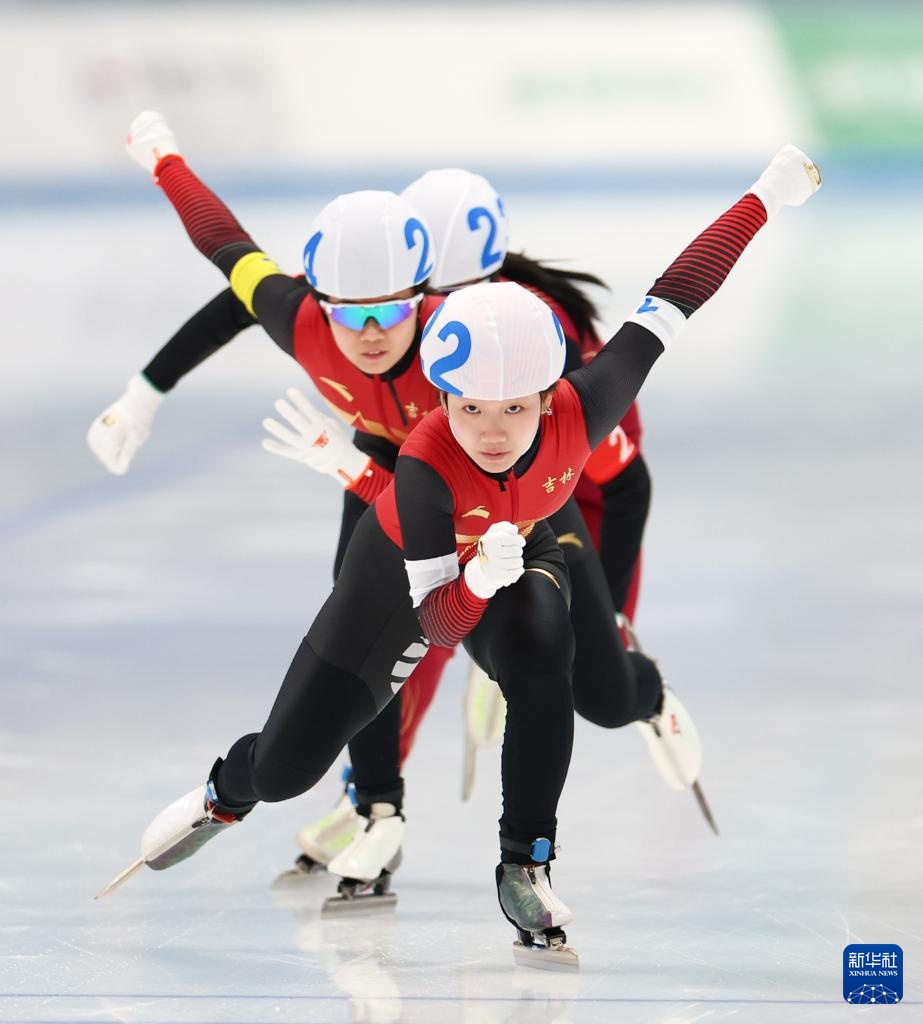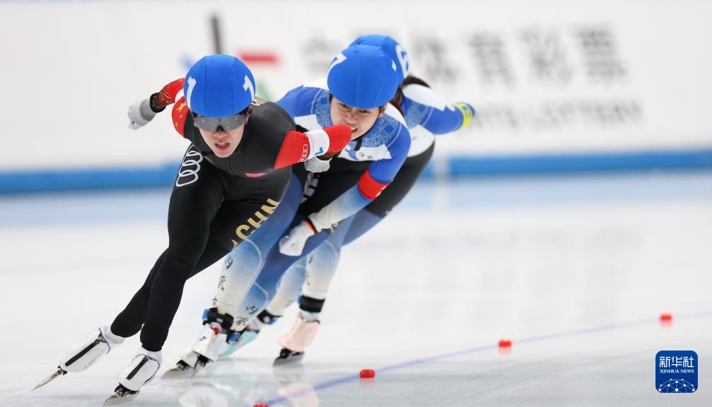 当日,2023-2024赛季全国速度滑冰冠军赛女子团体追逐比赛在北京国家速滑馆举行。