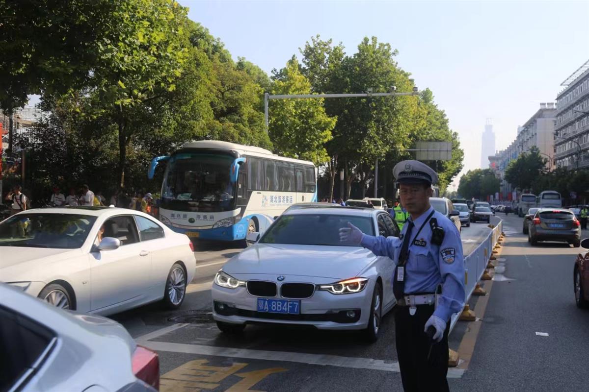 汉马赛道由北向南穿过长江大桥,就来到武昌核心区,经过黄鹤楼下,从武昌江滩、沙湖大桥到中北路、洪山广场,再经八一路进入东湖绿道。半程马拉松终点设在武昌区,位于书卷路湖北省图书馆侧门前。每年的汉马交通保障中,张伟哲作为一名骨干交警,从未缺席。
