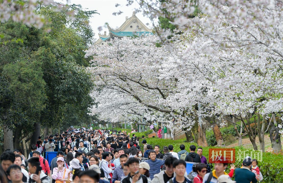 珞樱迷人,最激动人心的莫过于“樱花雨”。3月23日,恰如其分的暖风,让武汉大学开得正旺的樱花不时飘落,如雨如雪。当天,该校首次举行高中生赏樱专场活动,来自全国各地的约2万名高中生,独享了这份浪漫。他们还聆听了大师讲座,走进各学院和实验室参观,对大学生活有了更清晰的认识。