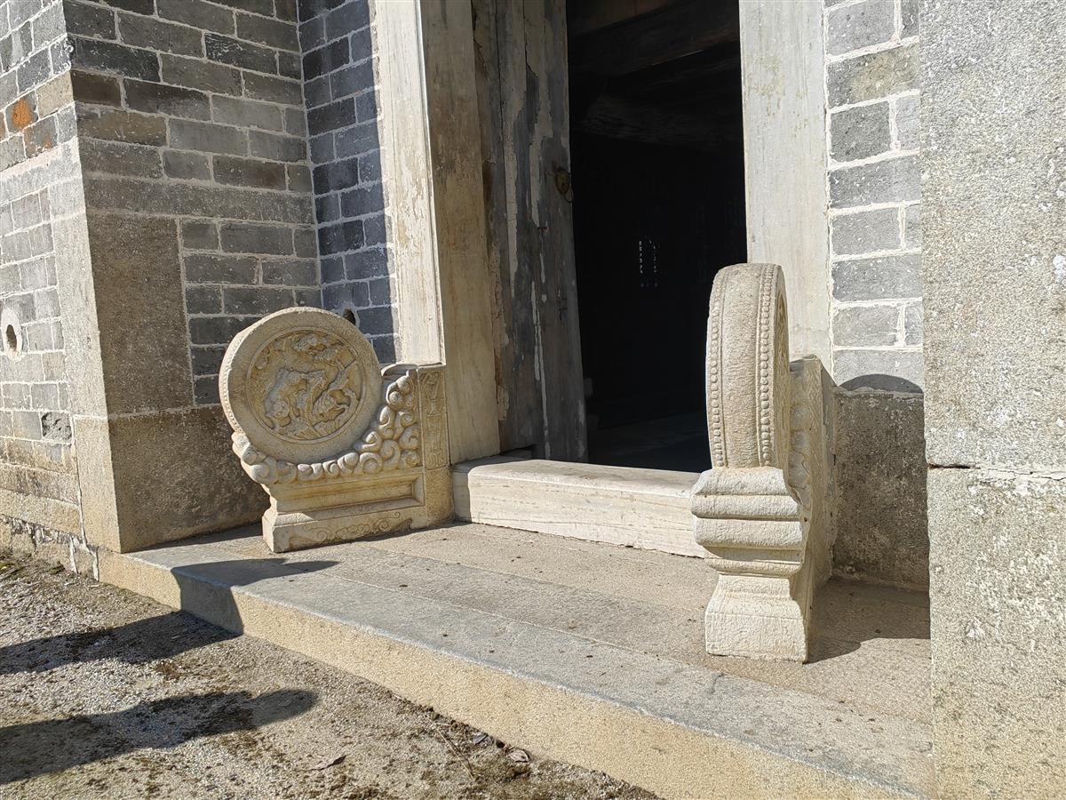 沿着一道蜿蜒的石墙,一座面北朝南、青砖黛瓦硬山顶的大宅院立刻呈现在眼前。高高的门槛两边,有一对精美的汉白玉抱鼓石。英山县文物局工作人员、县博物馆特聘专员姜红胜说,大别山及其周边地区不产汉白玉,段氏府的汉白玉显然采购自远方,定然价值不菲。
