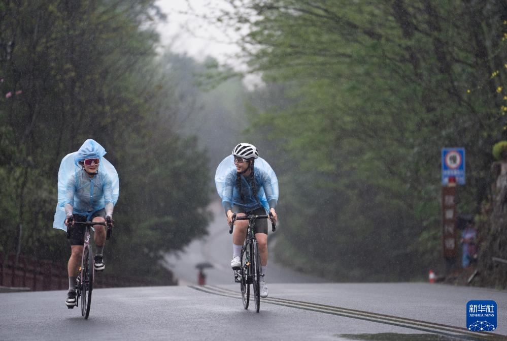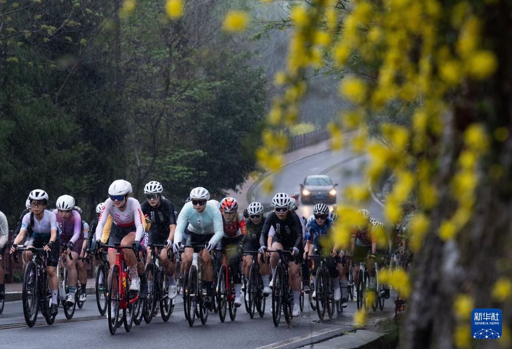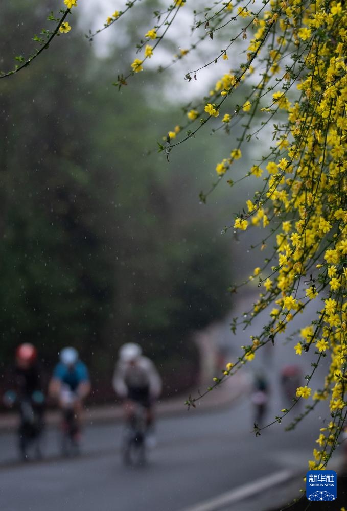 3月24日,选手们在雨中骑行。新华社记者 江宏景 摄