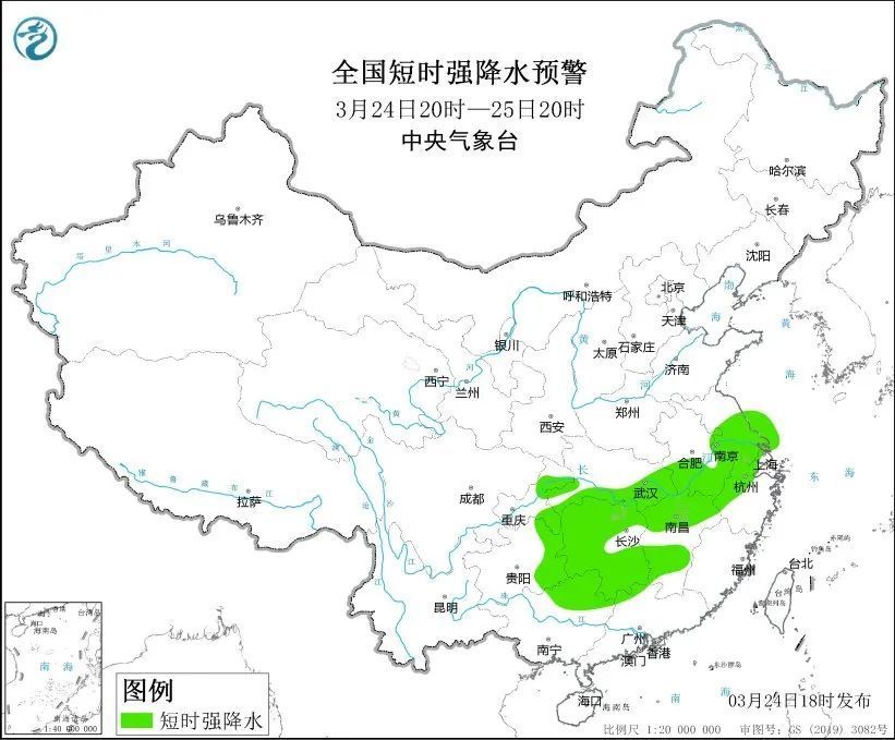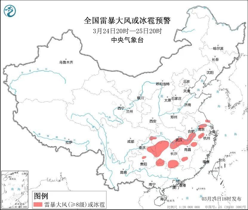 由于冷暖空气的交锋对峙,强对流天气也将在今天夜间到明天进入最强时段。中央气象台今晚18时继续发布强对流蓝色预警,重点关注安徽中南部、江苏中南部、湖北东部和南部、重庆东部、贵州东部、湖南北部和东南部、江西东北部和中南部、浙江西北部、广西东北部等地,部分地区将有8-10级雷暴大风或冰雹天气;另外,安徽中南部、江苏中南部、上海北部和西部、湖北东部和南部、重庆东部、贵州东部、湖南、江西、浙江西北部、广西东北部、广东西北部等地的部分地区将有短时强降水天气,最大小时雨量20-40毫米,局地可达50毫米以上。