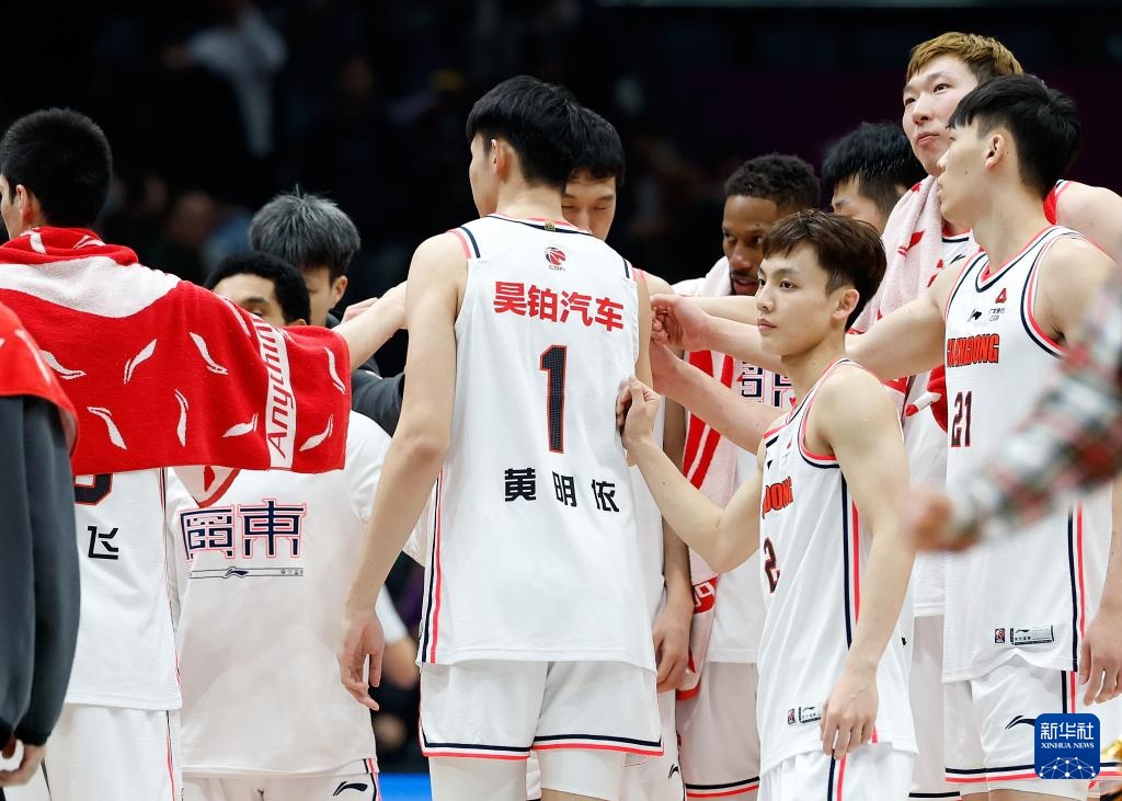 3月24日,广东华南虎队球员在赛后庆祝获胜。新华社记者 王丽莉 摄