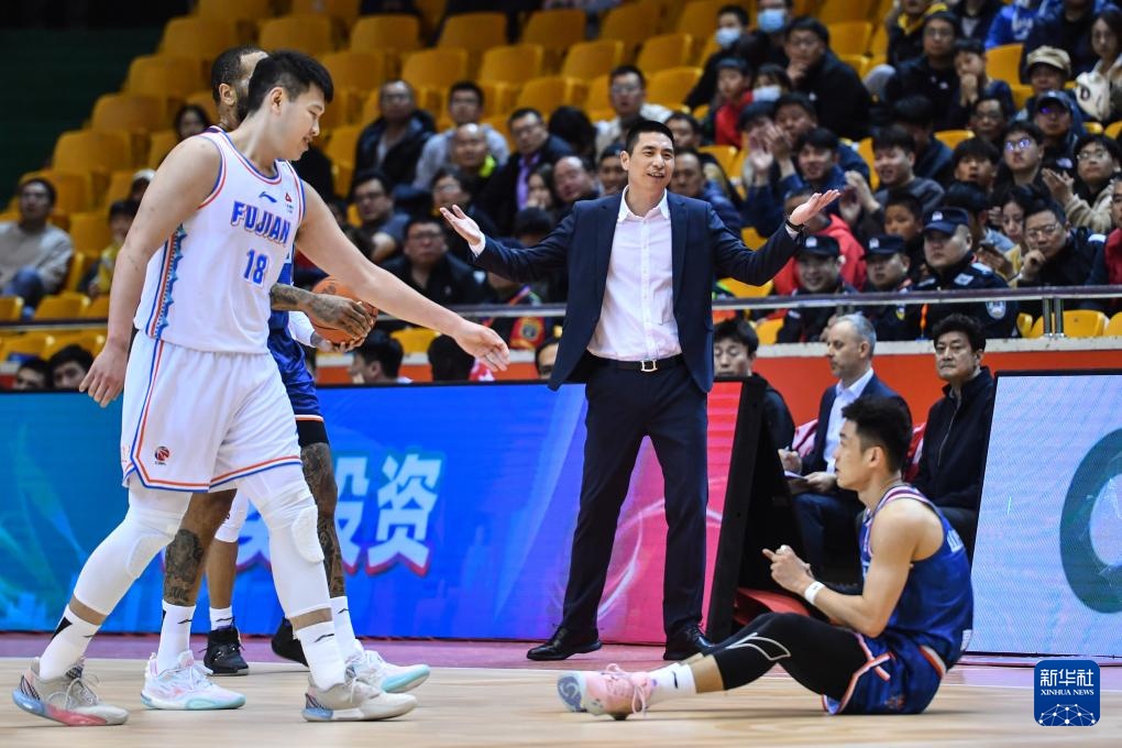 3月24日,福建浔兴股份队主教练朱世龙(右二)在比赛中。新华社记者 朱峥 摄