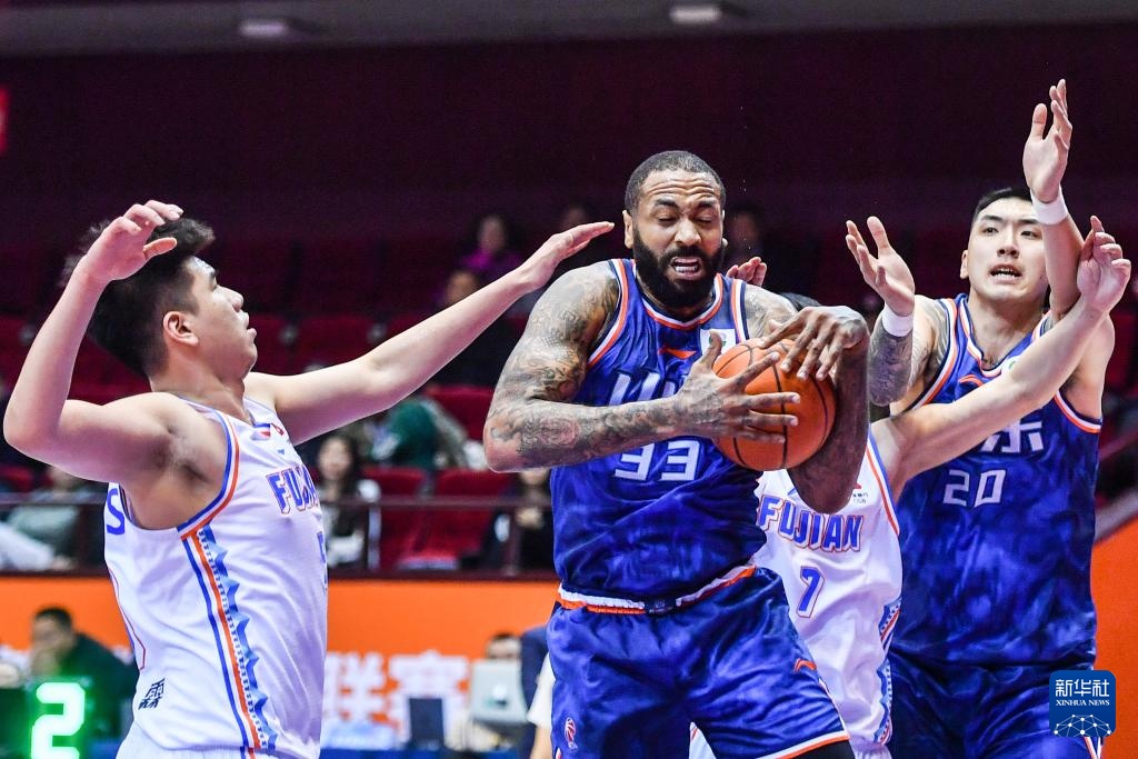 3月24日,山东高速队球员吉伦沃特(中)在比赛中进攻。新华社记者 朱峥 摄