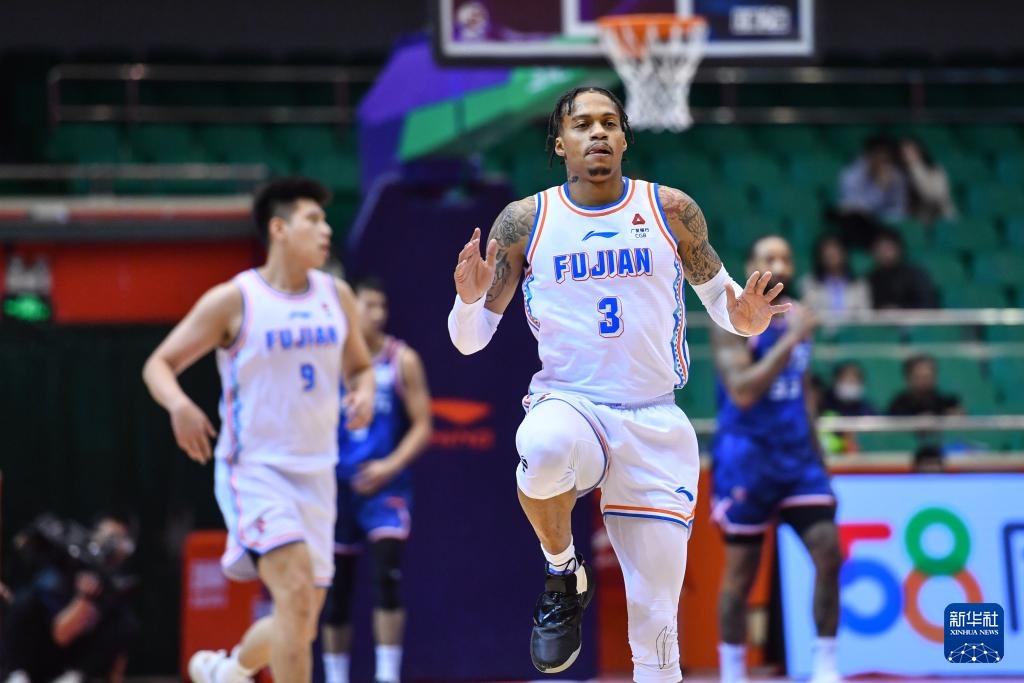 3月24日,福建浔兴股份队球员约瑟夫·杨在比赛中庆祝得分。新华社记者 朱峥 摄