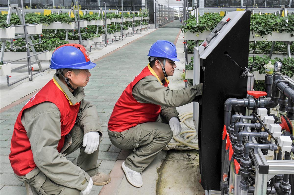 供电员工对智能灌溉系统、控温系统、通风系统等用电设备进行全面检查