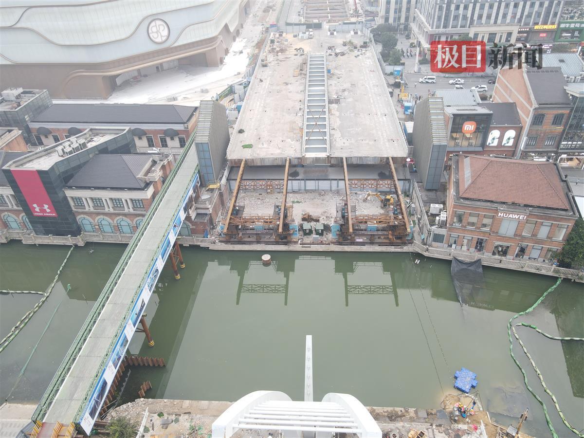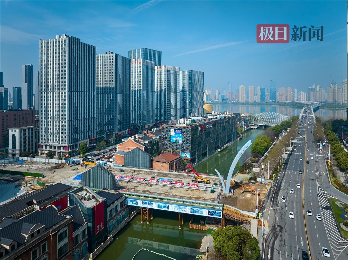 26日上午,极目新闻记者在现场看到,歌笛桥已完美复位。施工人员正在进行护栏安装等后续作业。武汉地铁股份公司副总经理胡凯旋介绍,歌笛桥顶推施工要把楚河临时阻断,一旦大雨天气增多,要确保楚河通畅,围堰必须及时拆除。所以必须抢抓枯水期施工。为此,项目部龙年春节没有放假,要抢在汛期前完成基础工程。项目部拔除了13根直径1.5米的旧桩,新建了16根新桥桩,其中最长的桩深达41米。为了桥梁的稳固,桥桩植入数十米深的岩层,形成稳固的桩基础之后,再浇筑成桥梁的承台。