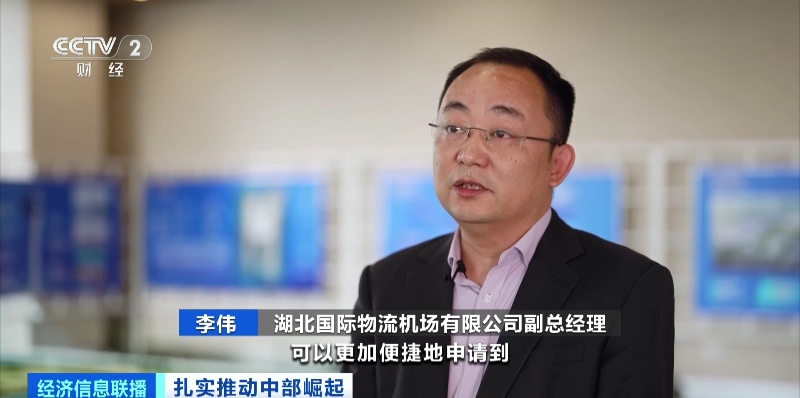 湖北国际物流机场有限公司副总经理 李伟:航司以及物流企业可以更加便捷地申请到稳定长期的航线航权,对于建设花湖国际自由贸易航空港都具有重要的意义。