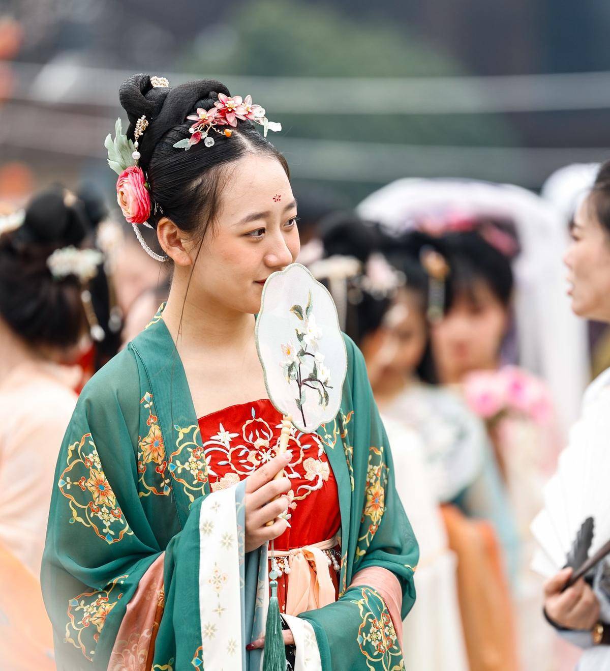 3月16日,武汉园博园第五届汉口里花朝节开幕。1000多名汉服爱好者组成20多个巡游方阵在园内外巡游,吸引了不少游客前来游玩,感受国风魅力。(湖北日报全媒记者 倪娜 通讯员 徐志刚 晏君 摄)