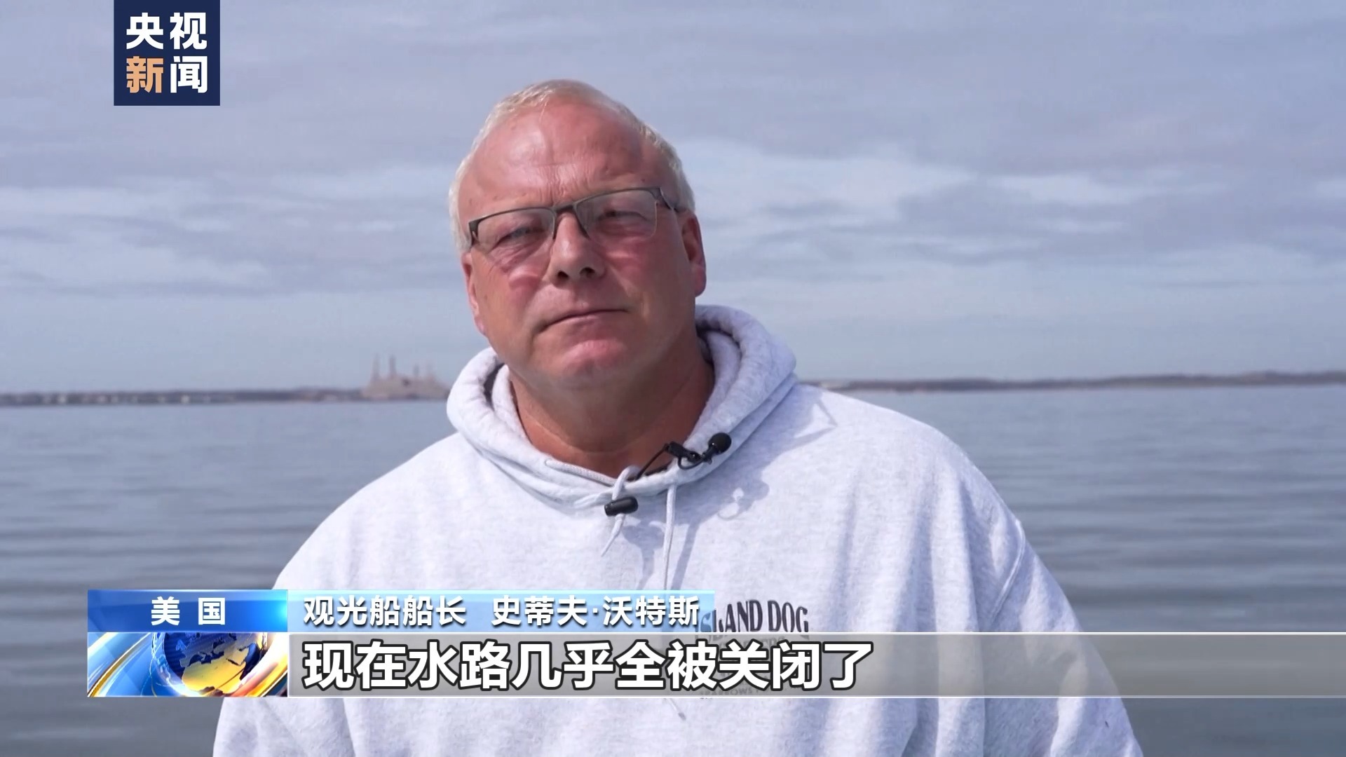 观光船船长 史蒂夫·沃特斯:一开始我以为这是一个玩笑,但后来我意识到真的发生了事故。现在交通完全中断了,然后设立了一个安全区,我们必须待在离那个区域,超过1.6公里的地方。现在水路几乎全被关闭了。