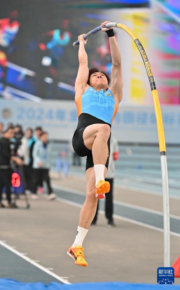 当日,在天津举行2024年全国室内田径锦标赛男子撑杆跳高决赛中,安徽队选手钟涛以5米75的成绩获得冠军并创造新的个人最好成绩,广东队选手黄博凯和山西队选手姚捷分获亚军和季军。