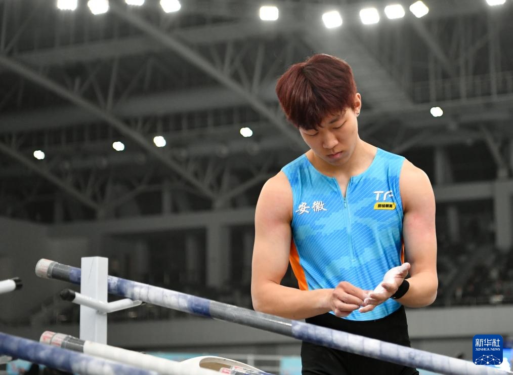 3月29日,安徽队选手钟涛在试跳前准备。新华社记者 宋彦桦 摄