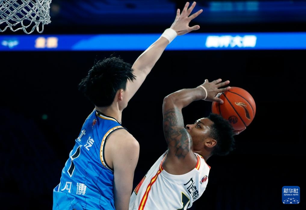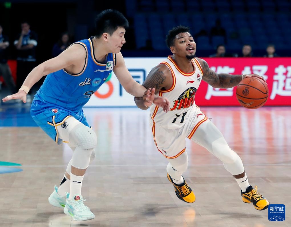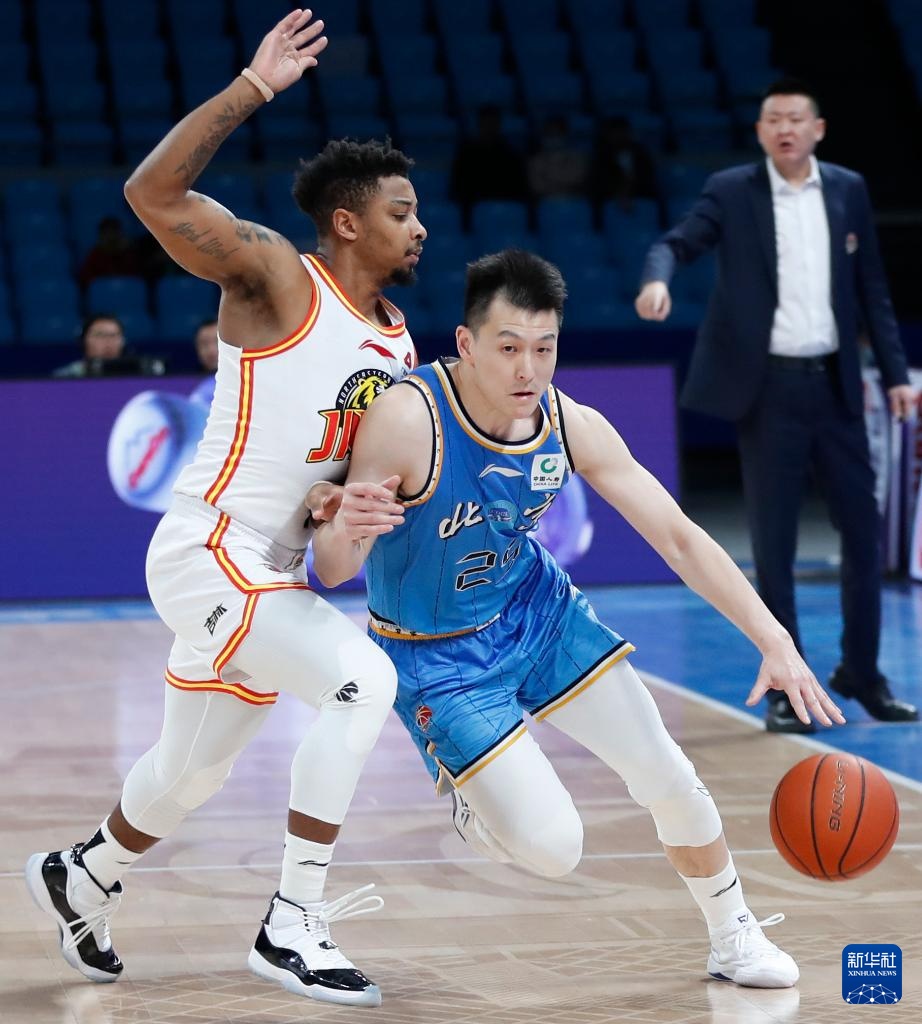 3月29日,吉林九台农商银行队球员姜伟泽(右)在比赛中突破。新华社记者 雒圆 摄