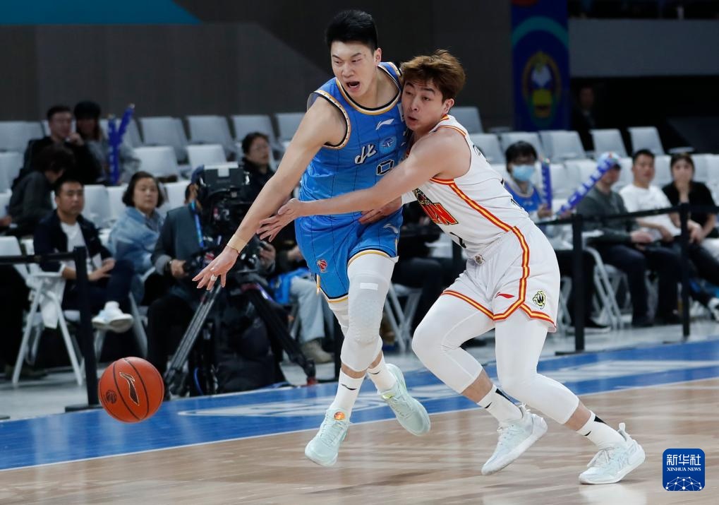 3月29日,北京北汽队球员田宇翔(右)在比赛中突破。新华社记者 雒圆 摄
