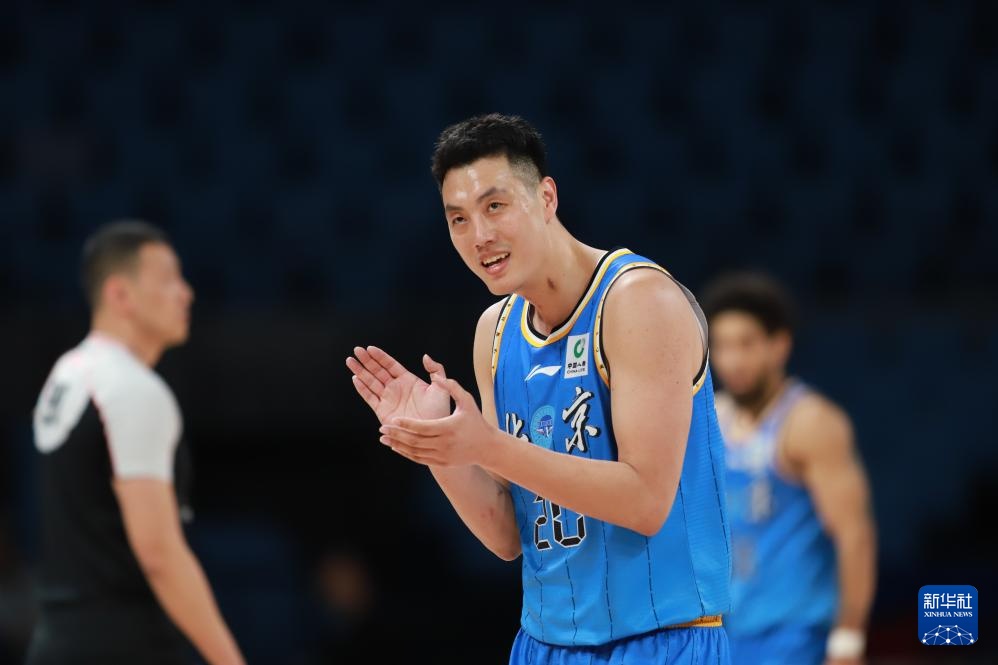 3月29日,北京北汽队球员翟晓川在比赛中庆祝球队得分。新华社记者 雒圆 摄