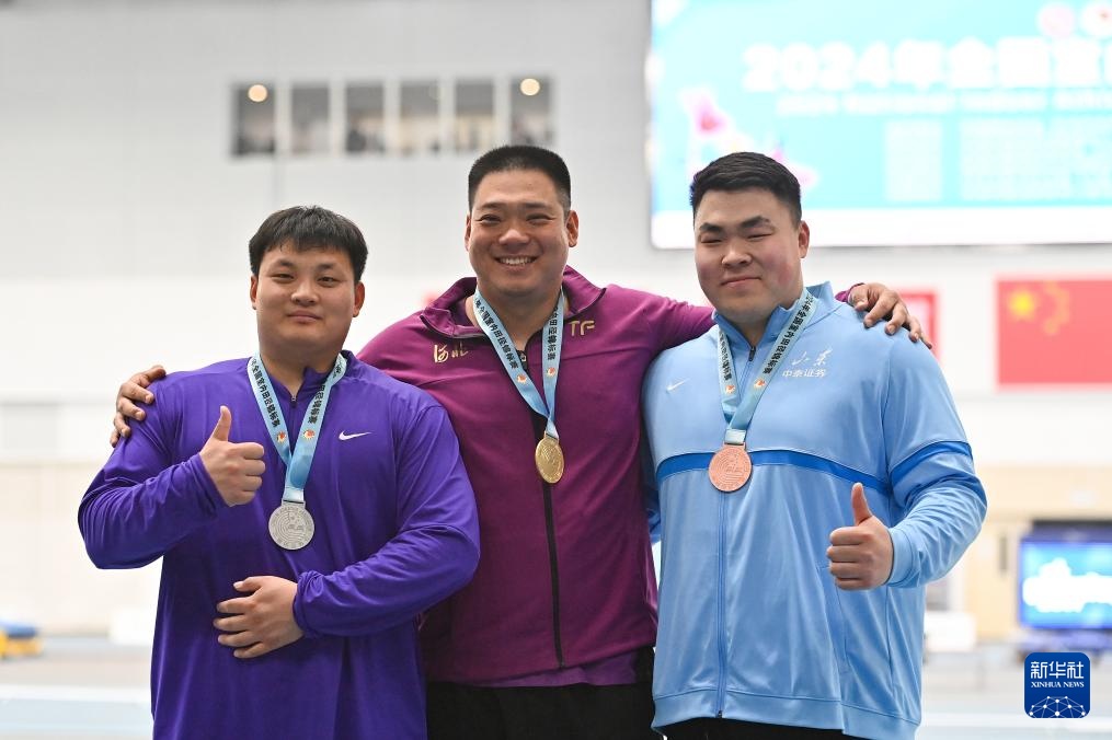 当日,在天津举行的2024年全国室内田径锦标赛男子铅球决赛中,河北队选手田子重以19米87的成绩获得冠军,四川队选手陈成雨和山东队选手邢家梁分获亚军和季军。