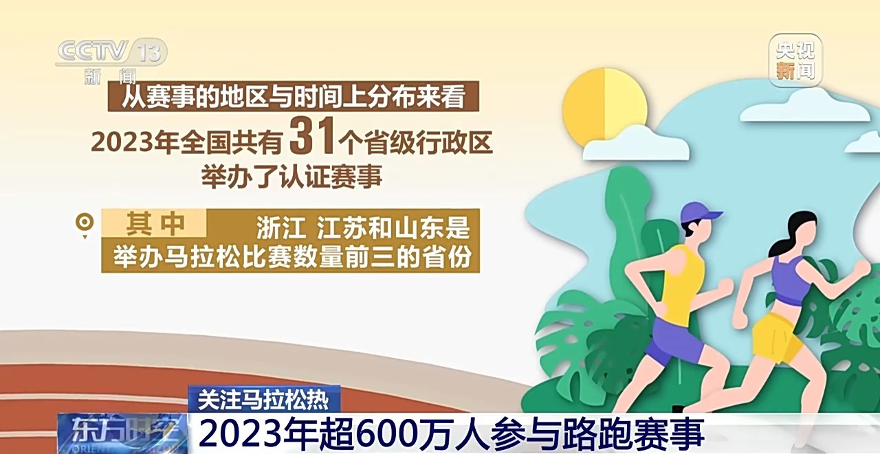 从赛事的地区与时间上分布来看,2023年全国共有31个省级行政区举办了认证赛事,其中浙江、江苏和山东是举办马拉松比赛数量前三的省份。