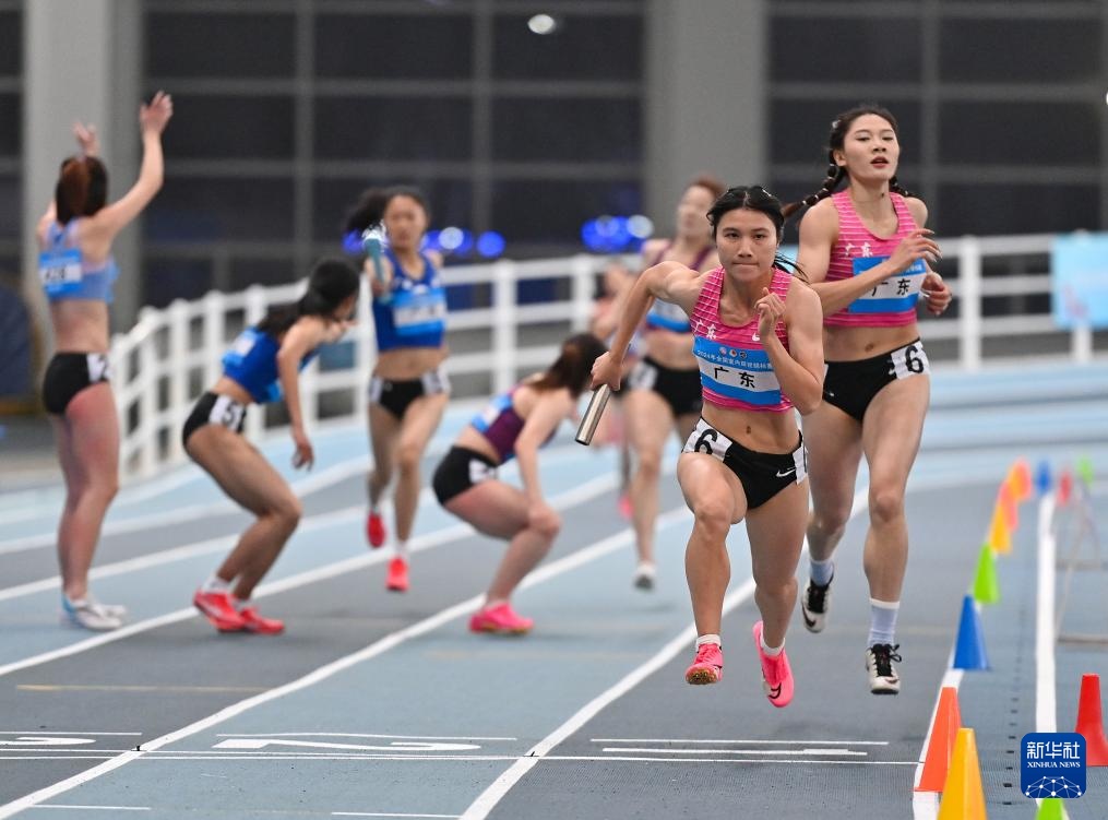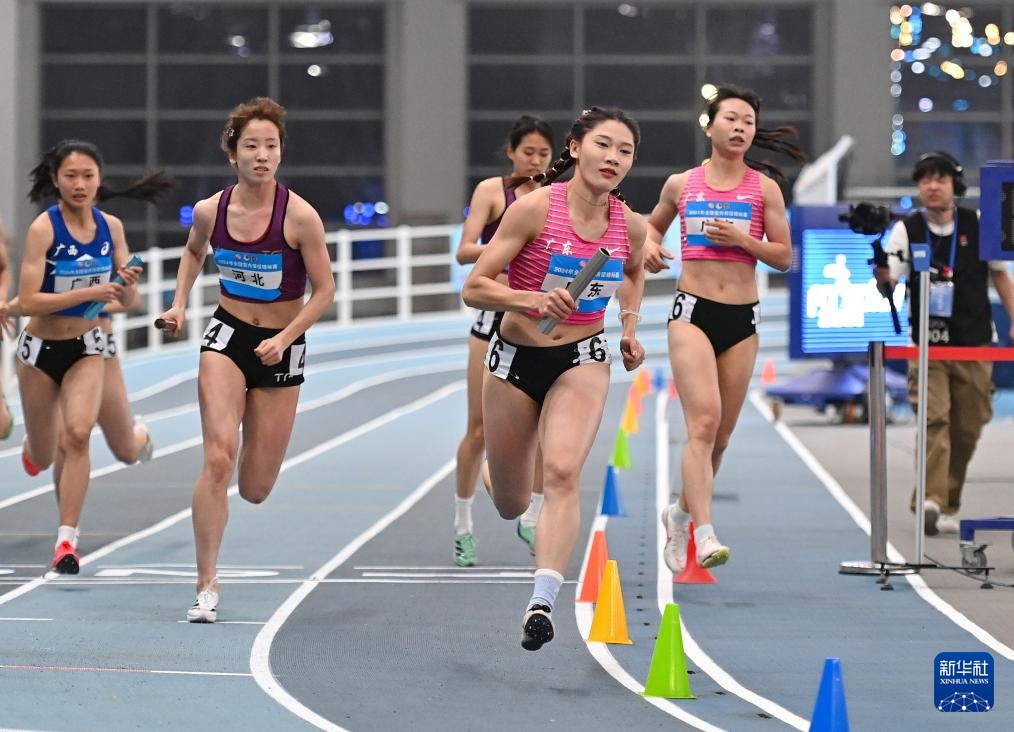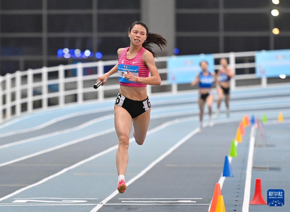 当日,2024年全国室内田径锦标赛女子4X400米决赛在天津举行。