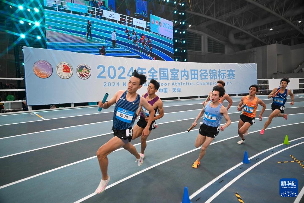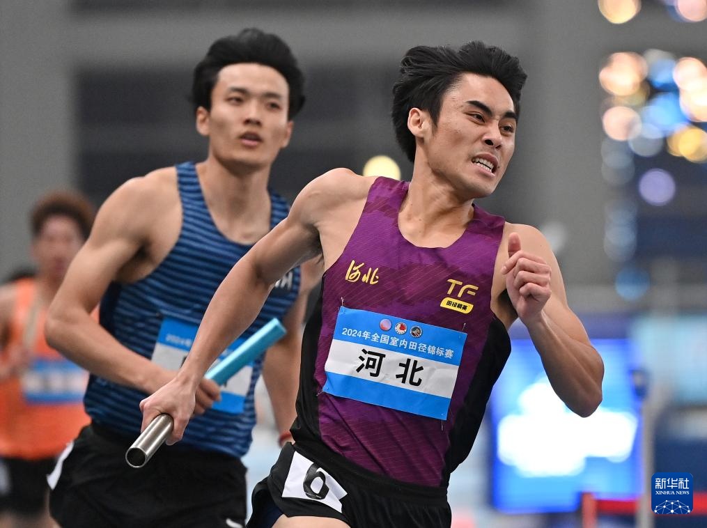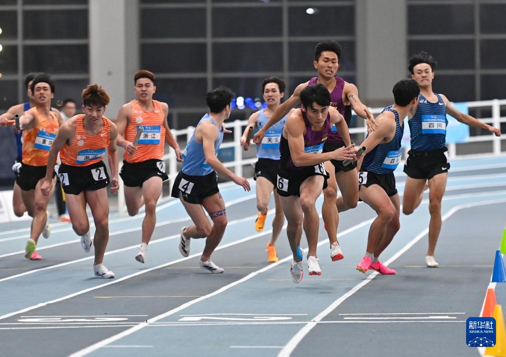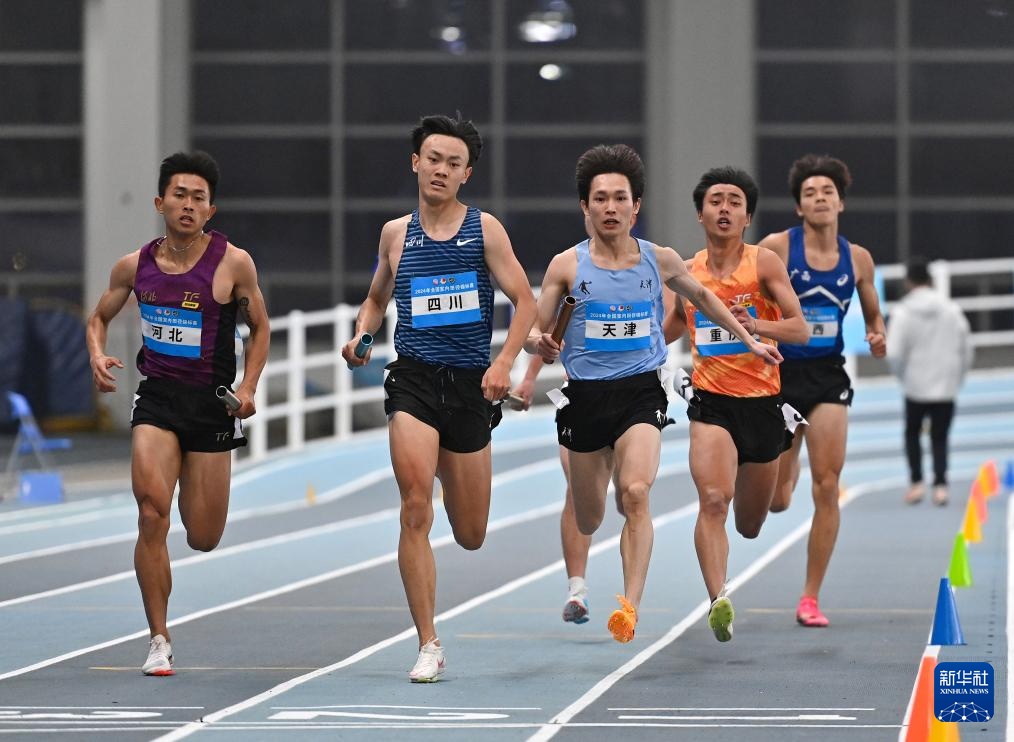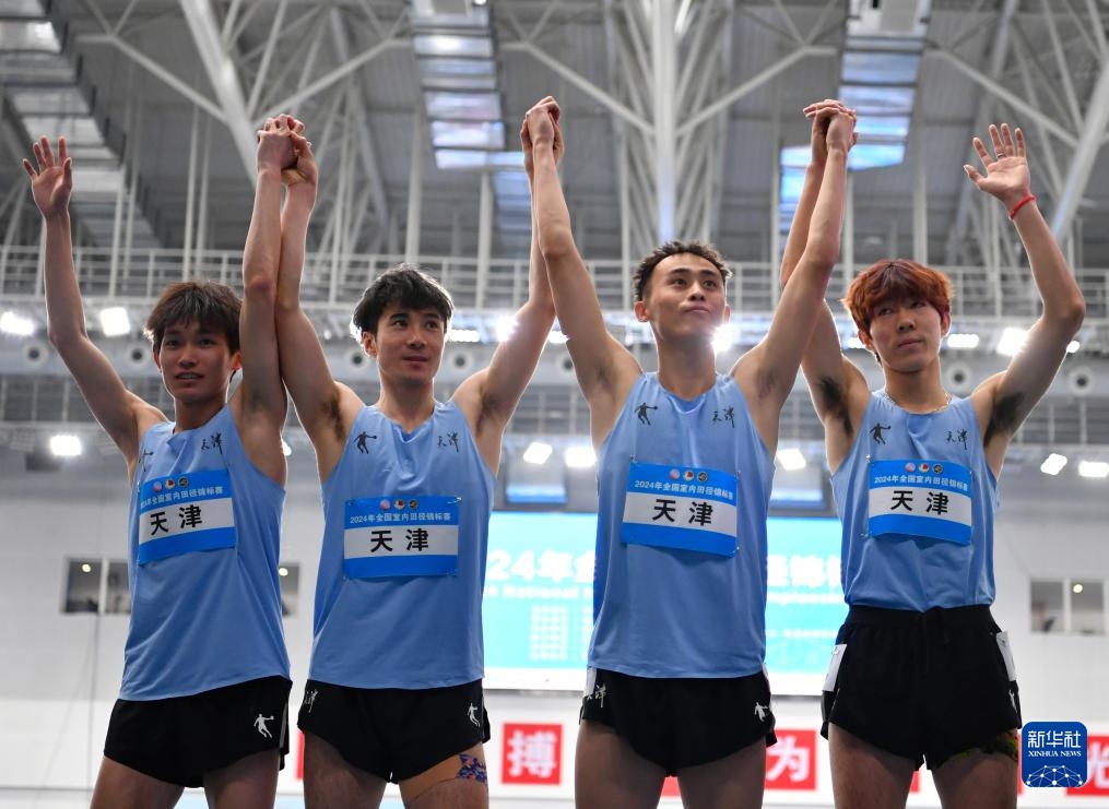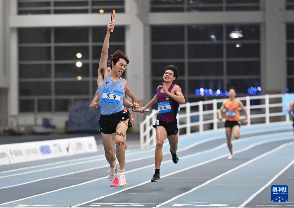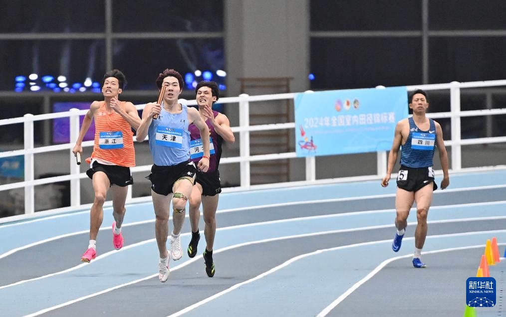 当日,2024年全国室内田径锦标赛男子4X400米决赛在天津举行。