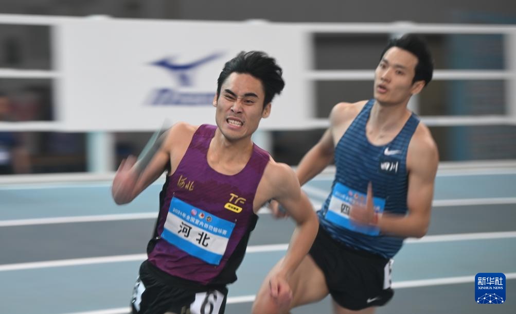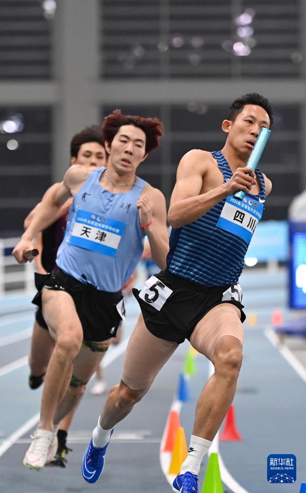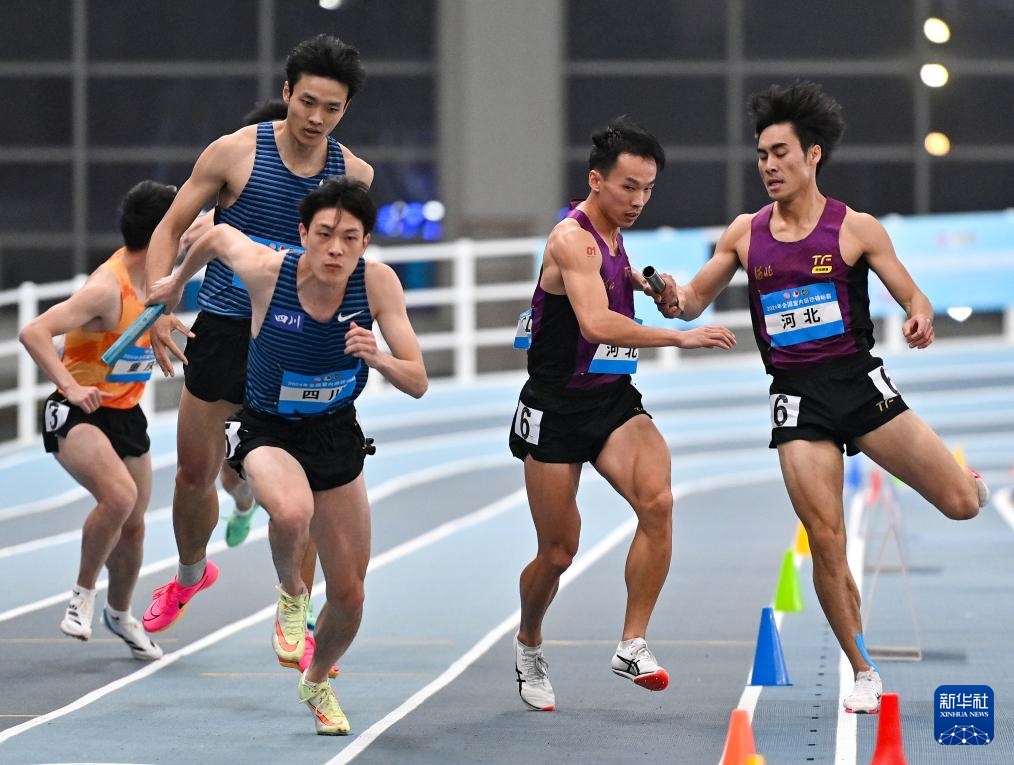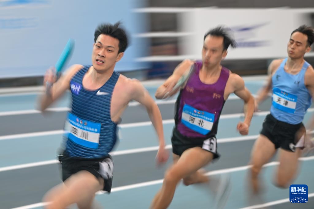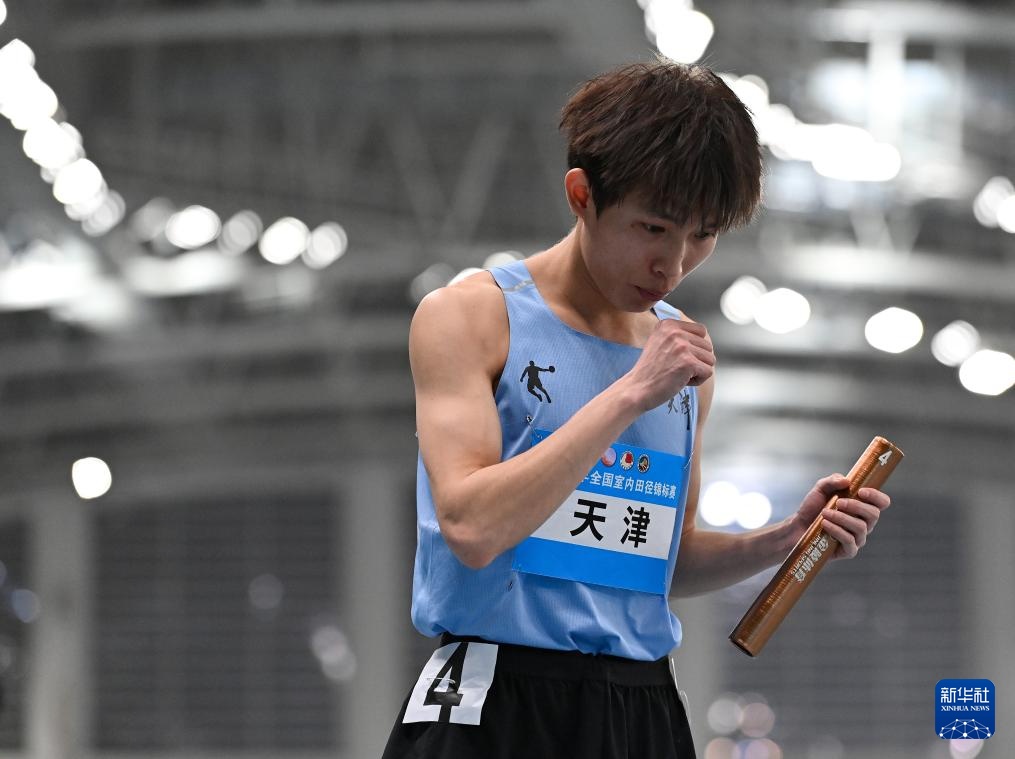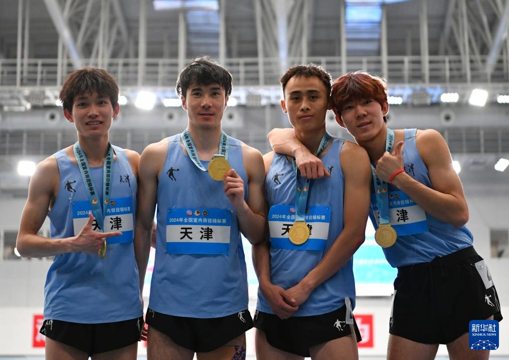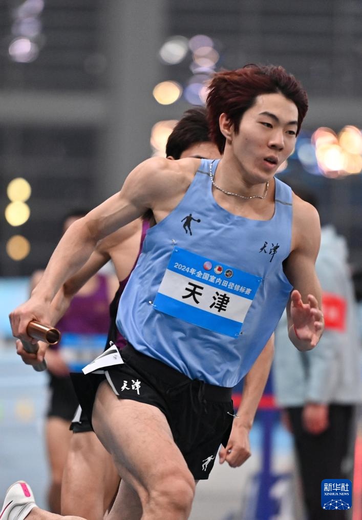 当日,2024年全国室内田径锦标赛男子4X400米决赛在天津举行。