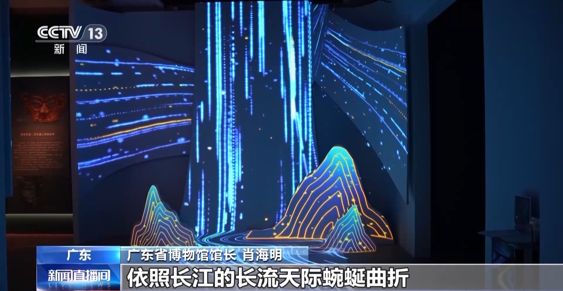 广东省博物馆馆长 肖海明:这个展览的文物质量很高,我们在设计上也想了很多办法,依照长江的长流天际蜿蜒曲折的特点,把整个展厅设计成一个流动的沉浸式空间。