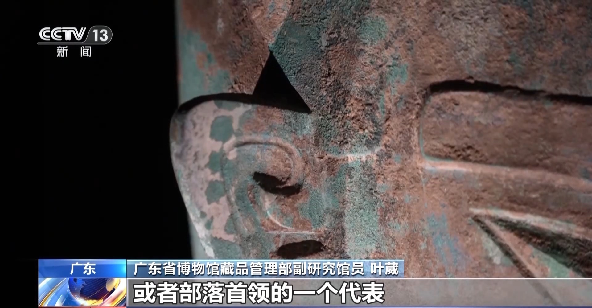 广东省博物馆藏品管理部副研究馆员 叶葳:这些人头像都是在蜀王统治下的不同族群的巫师或者部落首领的一个代表,在我们二号祭祀坑里边发掘发现的这些大部分器物都有焚烧和砸毁的痕迹,像这件也是经过了修复。