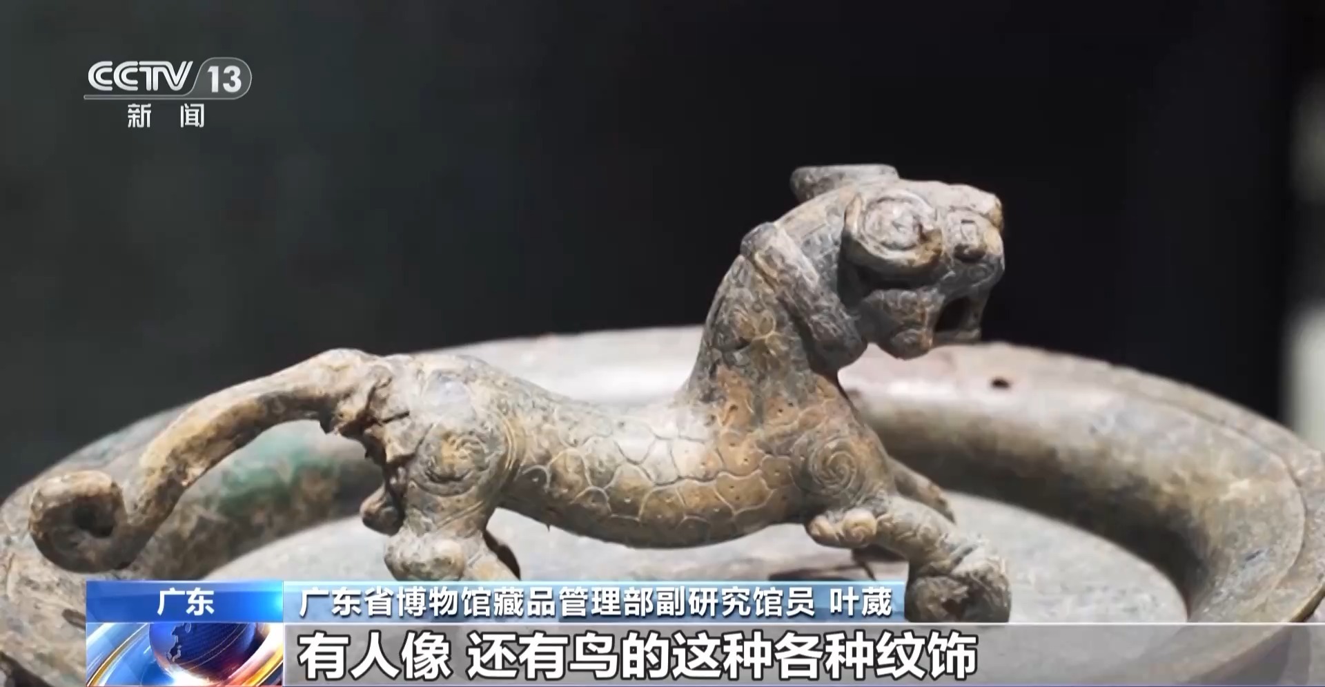 广东省博物馆藏品管理部副研究馆员 叶葳:它跟我们看到的中原地区其他的龙的造型是不同的,它的张口的形象,还有胡须的形象都跟其他的龙是不同的,而且我们看到商代的很多器物上的龙的形象上跟这个是不太一样的,这个龙的形象感觉上更写真一点。